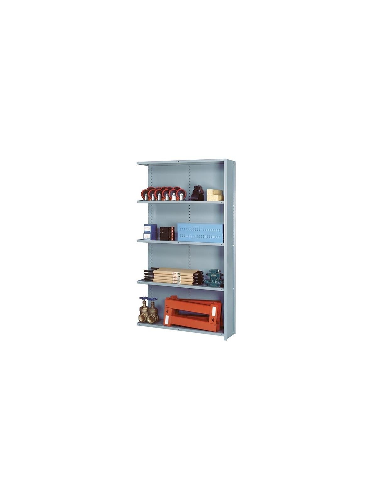 Yields more shelf space for long awkward items. Order one starter unit and the balance as adders to make up a row of shelving. Five shelf unit (four openings). FOB Shipping Point.