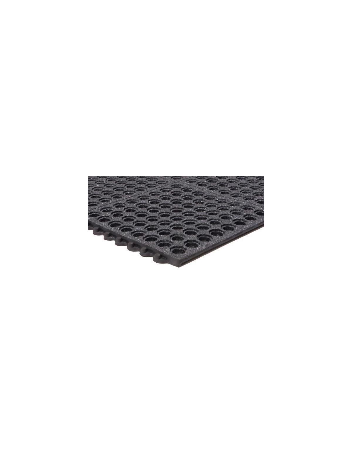 This interlocking drainage mat contains the highest level of grease and petroleum resistance and is made of 100% nitrile. It's ideal for demanding industrial and kitchen environments exposed to oil and grease spills. Modular 3 x 3' mats are lightweight and easy to handle for easy clean-up. Will not deteriorate from the effect of petroleum, oils and fats. Nib backing elevates mat above the surface for improved drainage and large holes allows debris to fall through. Choose the gritted surface for extra traction. FOB Shipping Point.