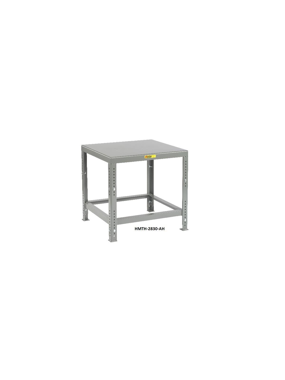 7 gauge steel top and heavy 2" x 2" leg construction are used to make a heavy-duty machine table that will meet the most demanding application. Adjustable legs allow table height position from 30" to 37" high with 1" increments.  FOB Shipping Point.