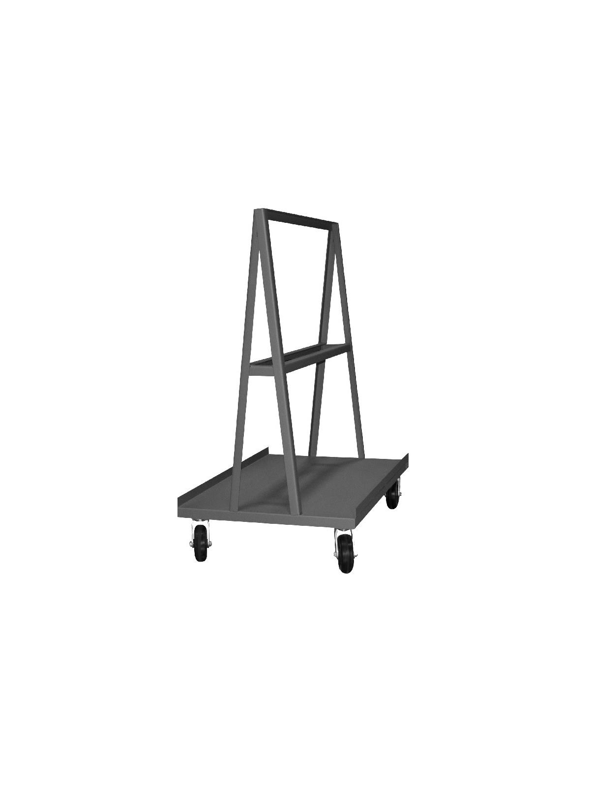 1-1/2" angle iron frame. 12 gauge, steel deck with reinforced channels underneath. 1-1/2" lip on deck prevents parts from falling off during transport. 6 x 2" phenolic casters; (4) swivel. Ships fully assembled. Durable, gray, textured powder coat finish. FOB Shipping Point.