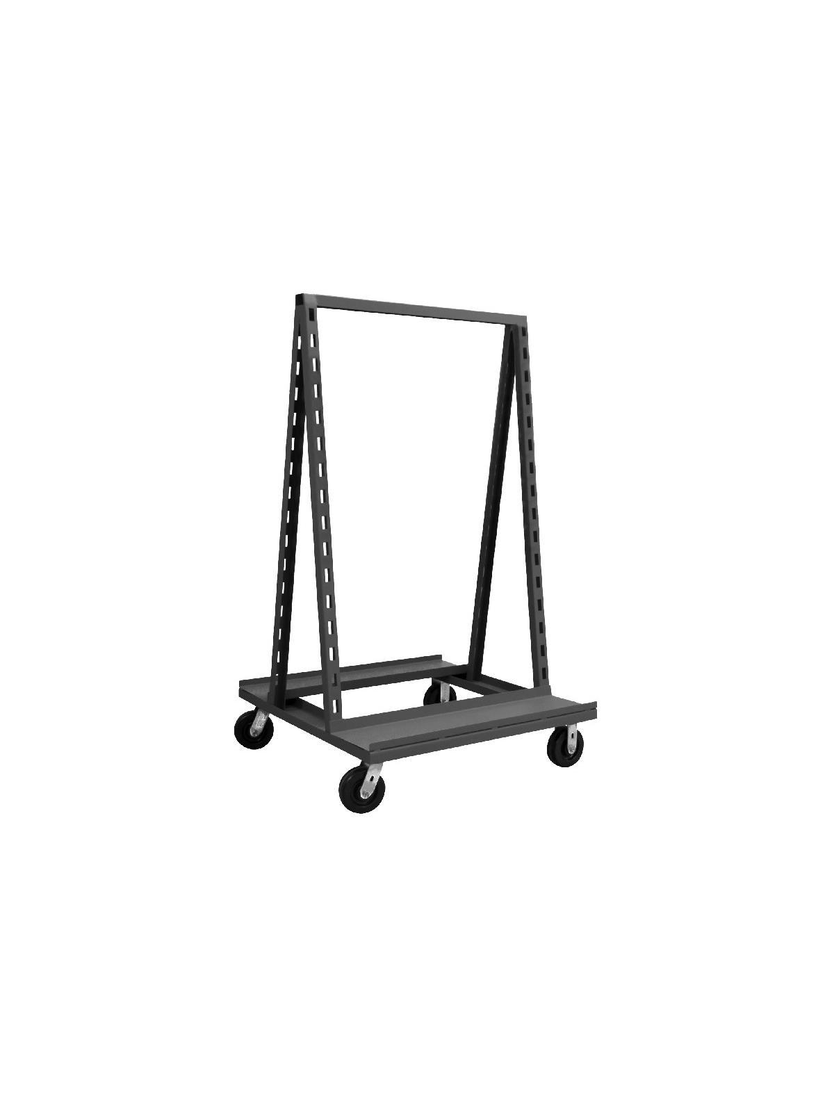 Keep parts, tools, supplies and packages right at the assembly line or work center. Heavy-duty all-steel construction. Base is 1-1/2" x 1/8" angle iron with 11 ga. steel formed upright channels punched on 3-1/2" centers. Easy rolling on bolt on 6" x 2" phenolic casters, 2 rigid, 2 swivel. Finished in durable Gray powder coat finish. Shipped fully assembled and ready for use. FOB Shipping Point.