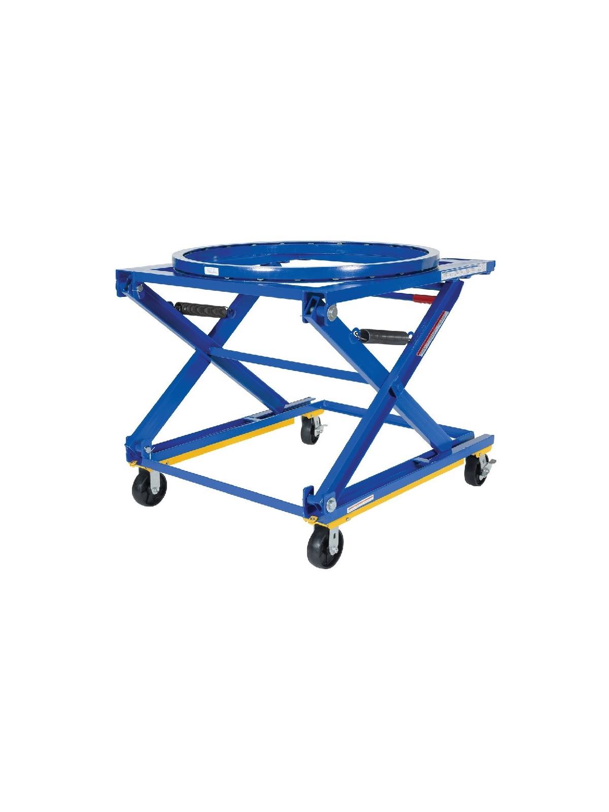 The Adjustable Height Pallet Stands are designed to manually adjust to three different ergonomic working heights. Unit includes a three position manual adjusting bar with spring assist to help raise and lower the deck. The Pallet Stand must be empty when adjusting the height. Unit is welded steel construction with baked-in powder-coated tough finish. The optional bolt-on manual carousel, suffix CA, is 40" in diameter by 2" tall and rotates 360°. The caster feature, suffix CK, consists of 6" x 2" glass-filled nylon two (2) rigid and two (2) swivel casters with brake. FOB Shipping Point.