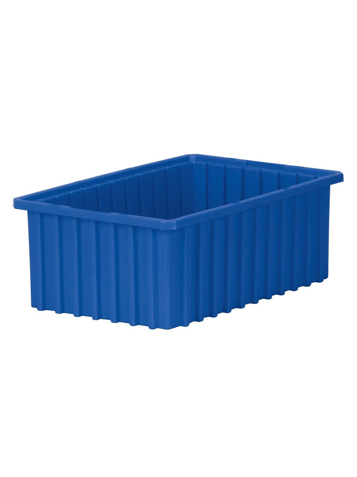Intersecting dividers allow the container to be subdivided in separate compartments as small as 1-1/8" sq. Injection-molded from high density polyethylene -- resists most solvents and chemicals. Compatible with most racks, shelving and automated material handling equipment. Available in Red, Blue, or Gray. Dividers and lids sold separately. FOB Shipping Point.