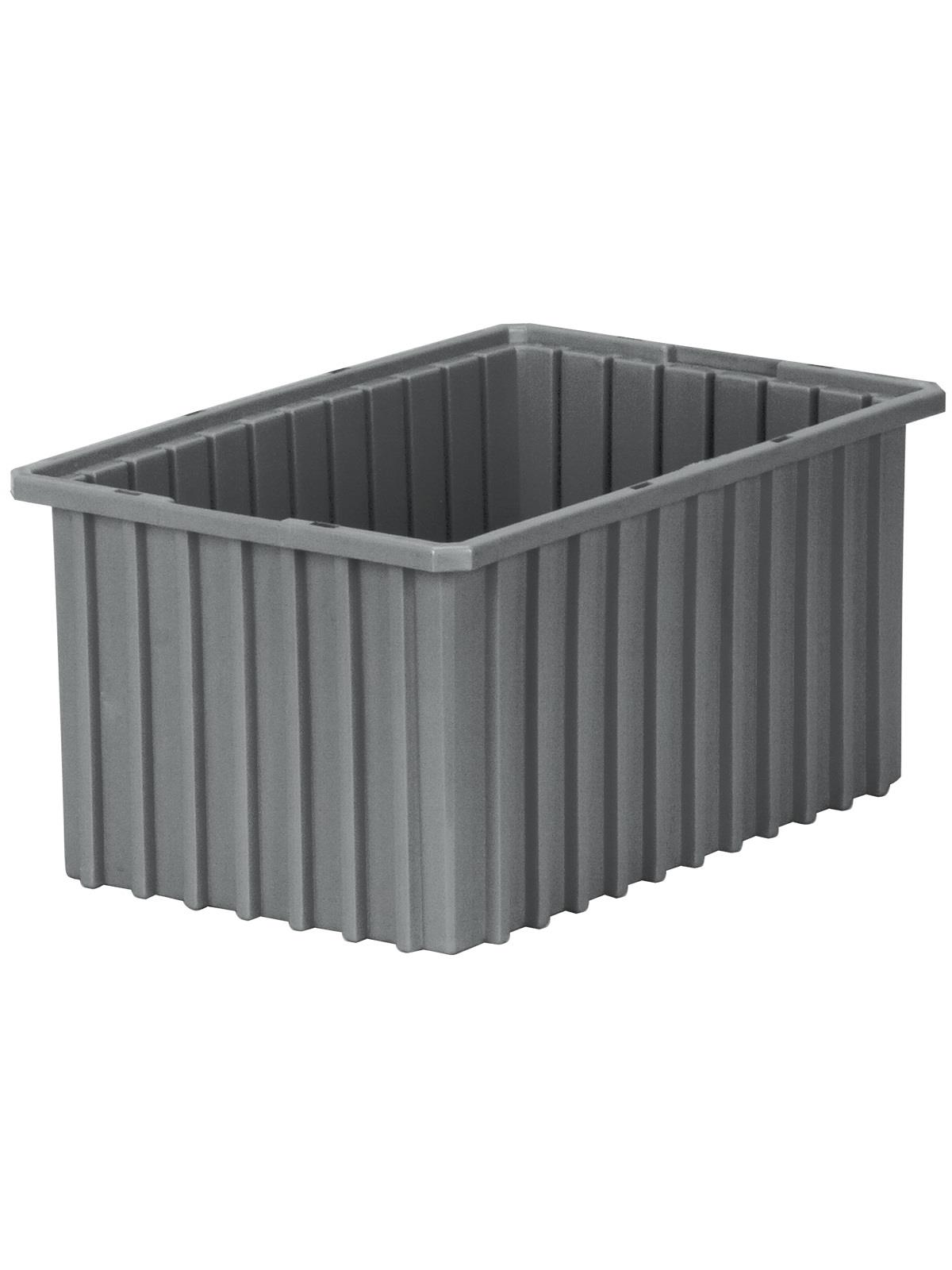 Intersecting dividers allow the container to be subdivided in separate compartments as small as 1-1/8" sq. Injection-molded from high density polyethylene -- resists most solvents and chemicals. Compatible with most racks, shelving and automated material handling equipment. Available in Red, Blue, or Gray. Dividers and lids sold separately. FOB Shipping Point.