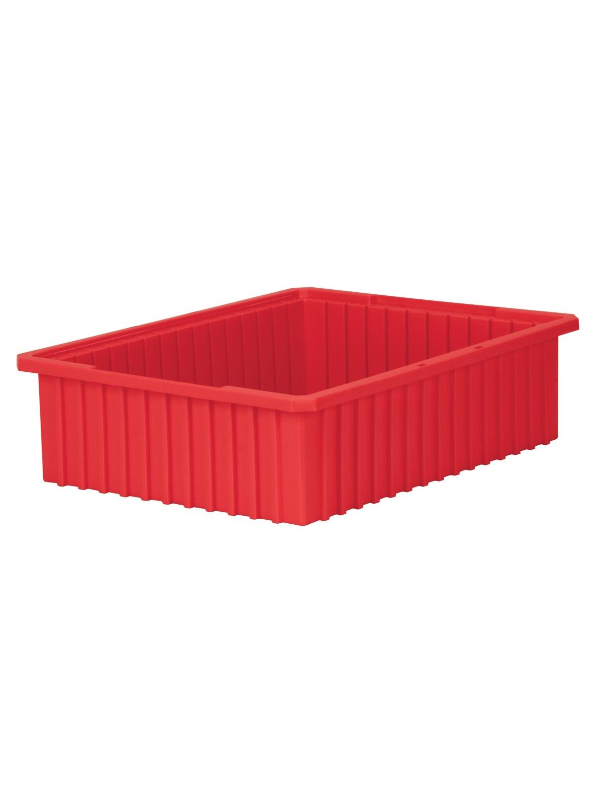 Intersecting dividers allow the container to be subdivided in separate compartments as small as 1-1/8" sq. Injection-molded from high density polyethylene -- resists most solvents and chemicals. Compatible with most racks, shelving and automated material handling equipment. Available in Red, Blue, or Gray. Dividers and lids sold separately. FOB Shipping Point.
