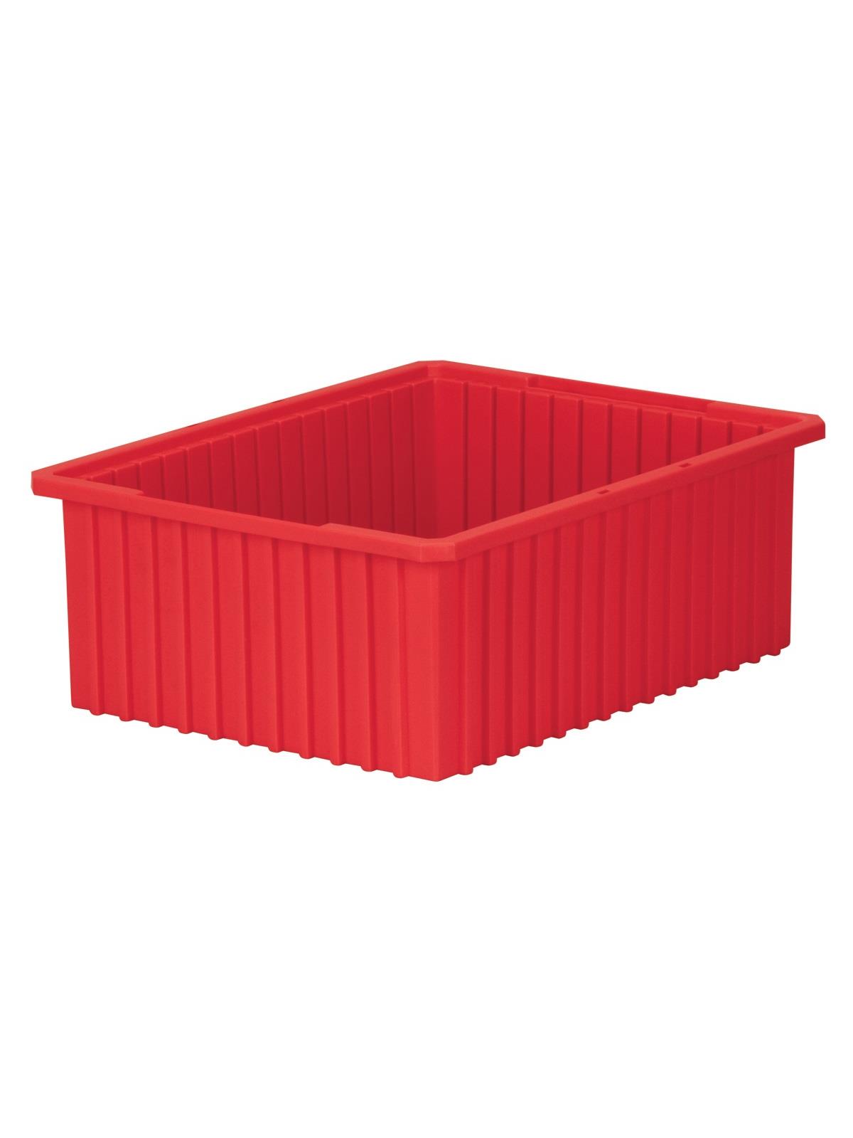Intersecting dividers allow the container to be subdivided in separate compartments as small as 1-1/8" sq. Injection-molded from high density polyethylene -- resists most solvents and chemicals. Compatible with most racks, shelving and automated material handling equipment. Available in Red, Blue, or Gray. Dividers and lids sold separately. FOB Shipping Point.