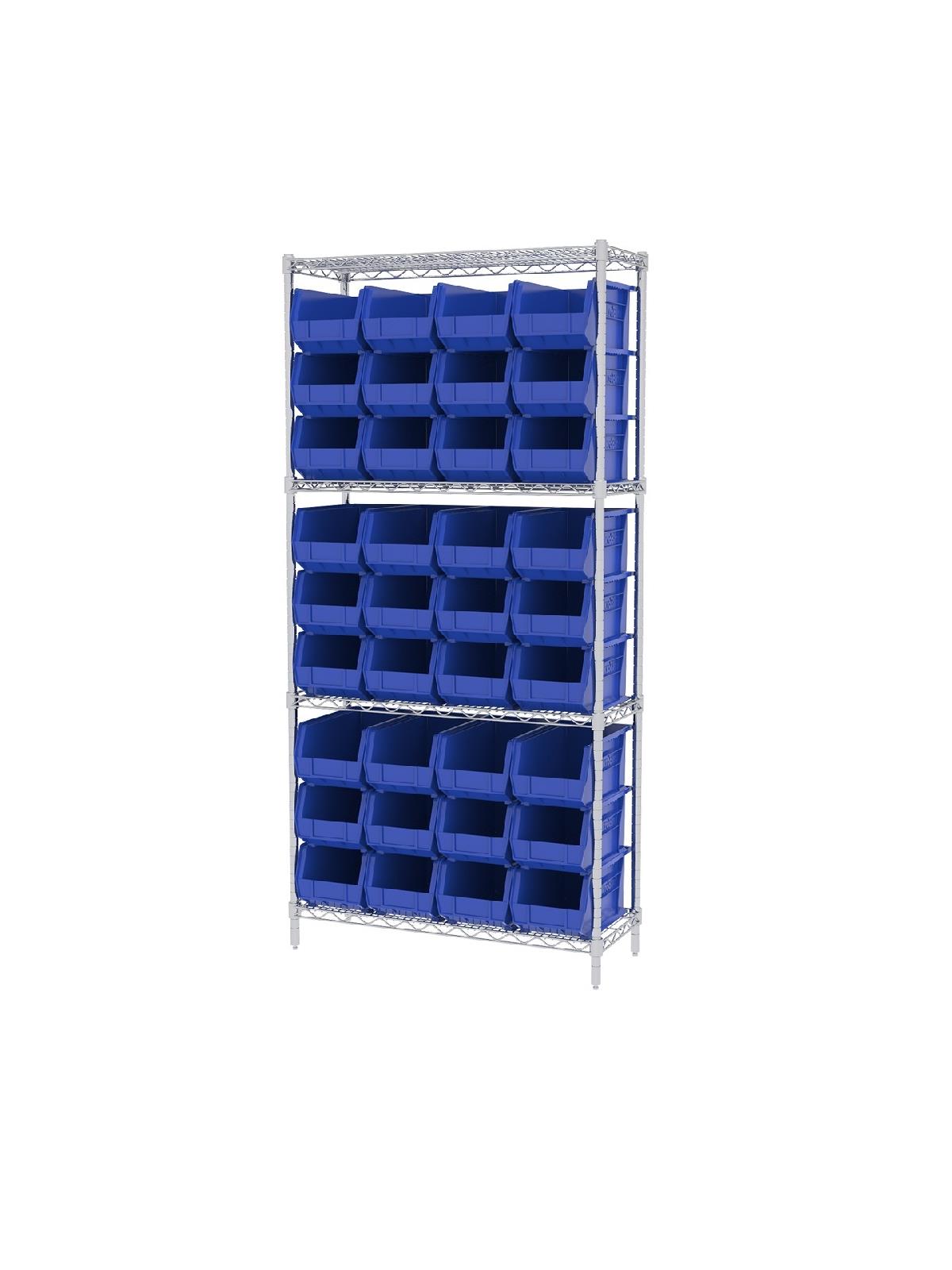 A wide variety of shelf configurations are possible with three sizes of shelving available. Durable AkroBins® feature a curved bottom hopper front, to enable easy access of small parts. Bins available in Blue, Red, Yellow, Stone, Green, or Semi-Clear. FOB Shipping Point.