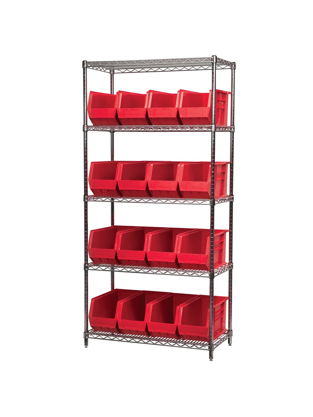 A wide variety of shelf configurations are possible with three sizes of shelving available. Durable AkroBins® feature a curved bottom hopper front, to enable easy access of small parts. Bins available in Blue, Red, Yellow, Stone, Green, or Semi-Clear. FOB Shipping Point.