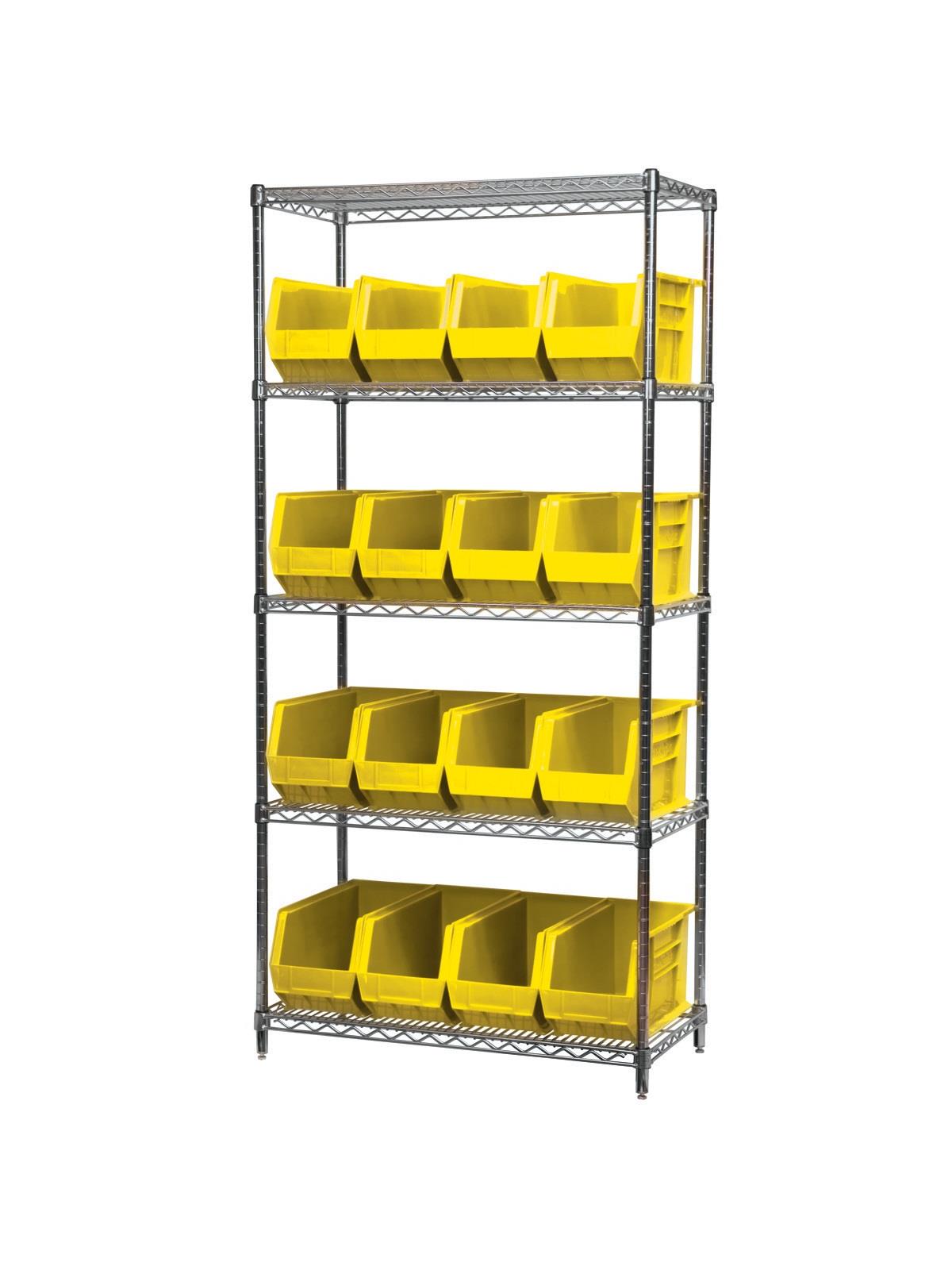 A wide variety of shelf configurations are possible with three sizes of shelving available. Durable AkroBins® feature a curved bottom hopper front, to enable easy access of small parts. Bins available in Blue, Red, Yellow, Stone, Green, or Semi-Clear. FOB Shipping Point.