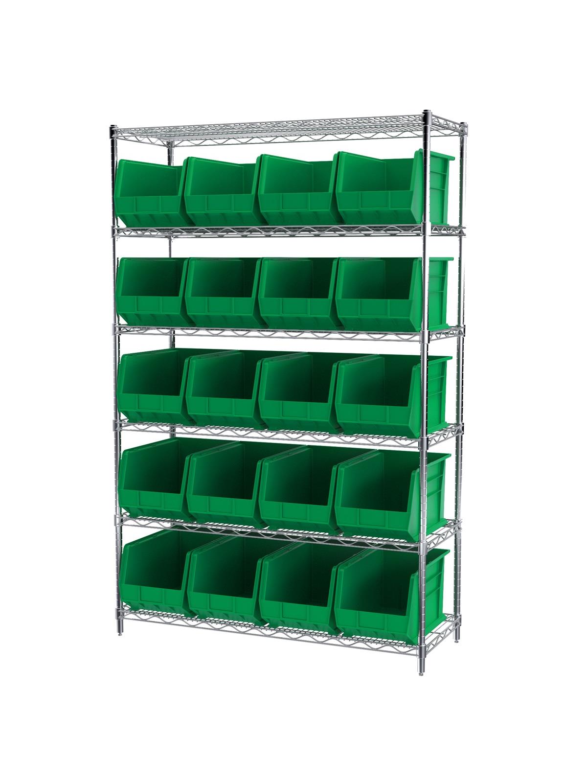 A wide variety of shelf configurations are possible with three sizes of shelving available. Durable AkroBins® feature a curved bottom hopper front, to enable easy access of small parts. Bins available in Blue, Red, Yellow, Stone, Green, or Semi-Clear. FOB Shipping Point.