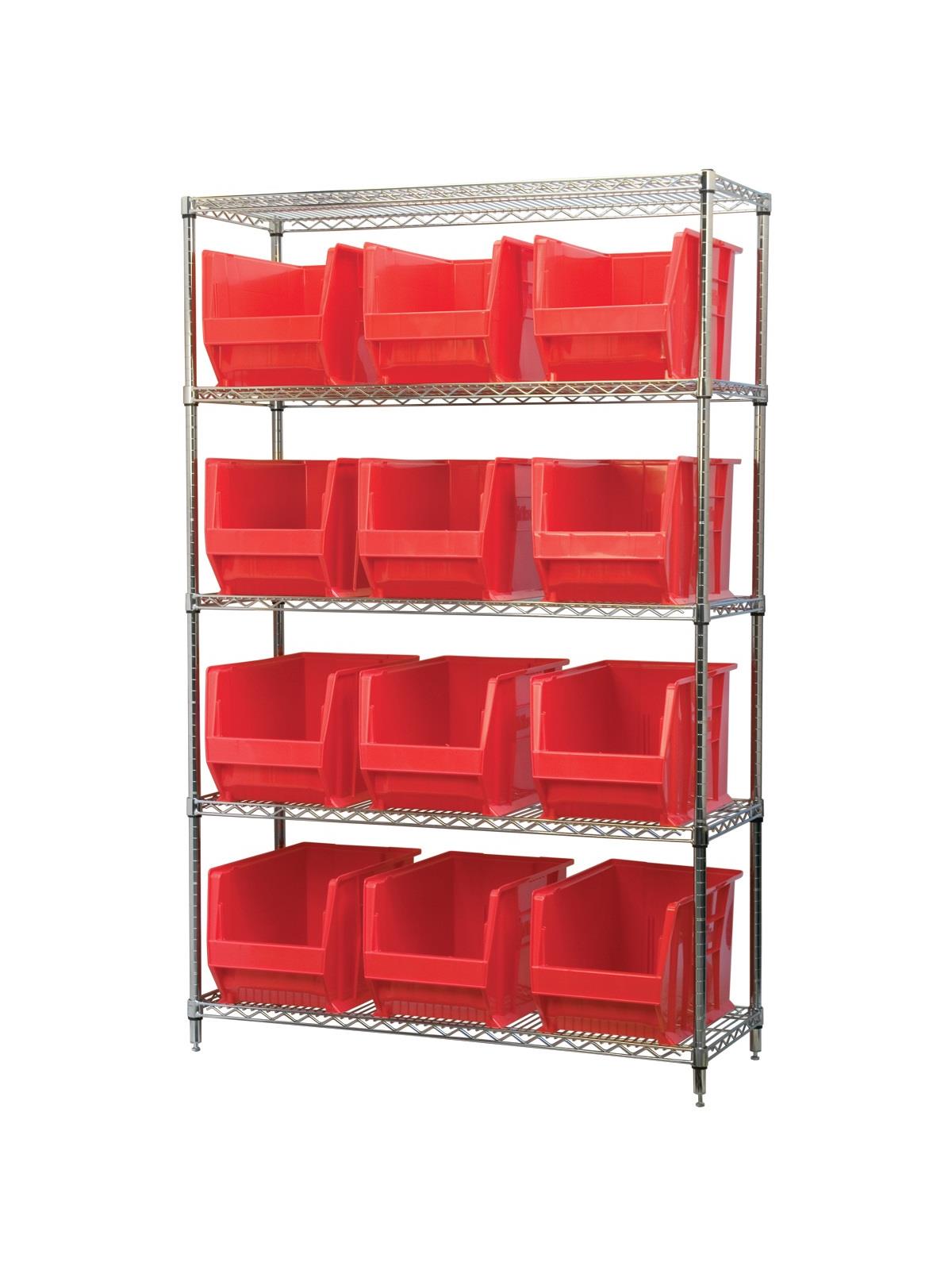A wide variety of shelf configurations are possible with three sizes of shelving available. Durable AkroBins® feature a curved bottom hopper front, to enable easy access of small parts. Bins available in Blue, Red, Yellow, Stone, Green, or Semi-Clear. FOB Shipping Point.