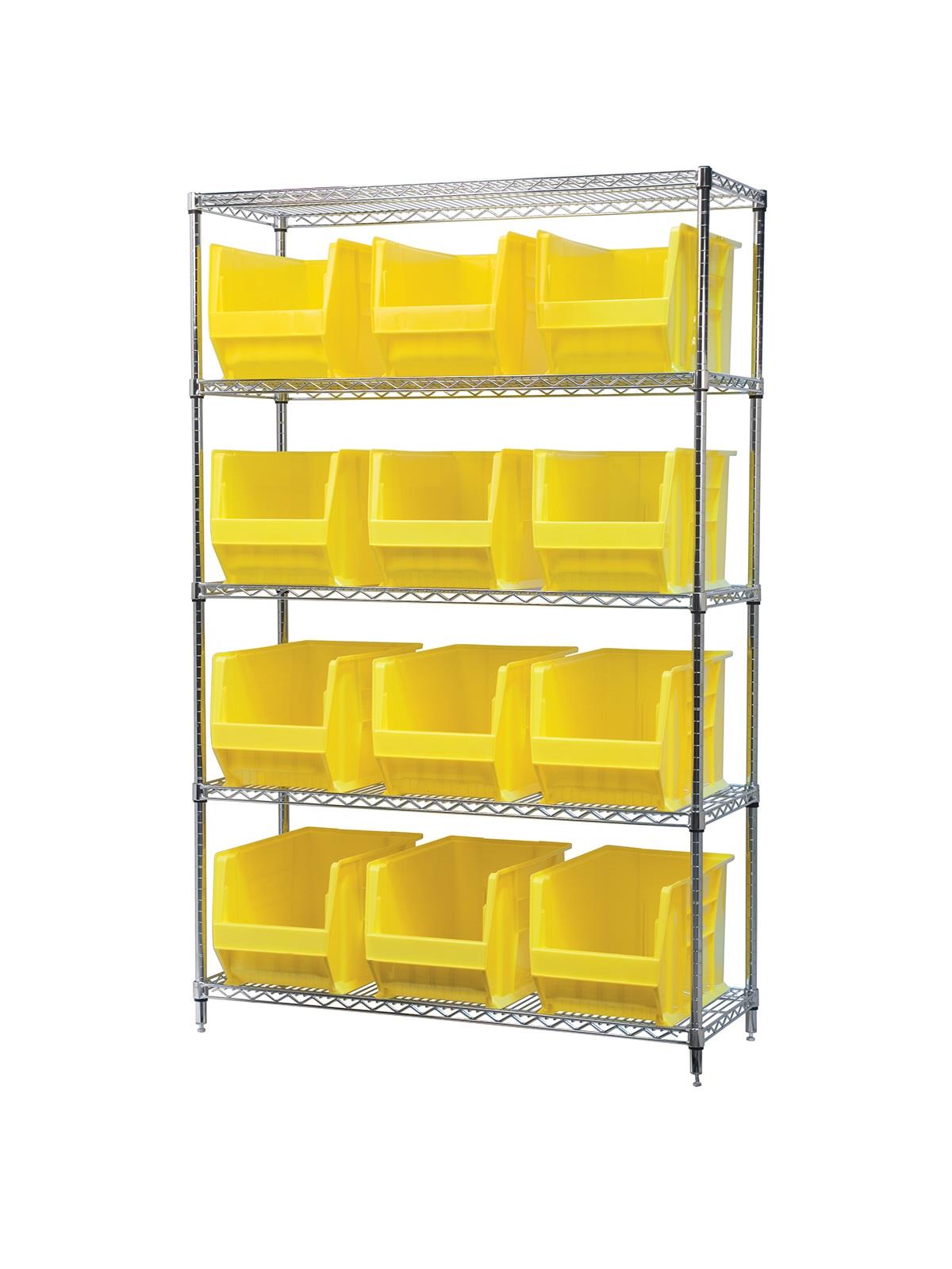 A wide variety of shelf configurations are possible with three sizes of shelving available. Durable AkroBins® feature a curved bottom hopper front, to enable easy access of small parts. Bins available in Blue, Red, Yellow, Stone, Green, or Semi-Clear. FOB Shipping Point.