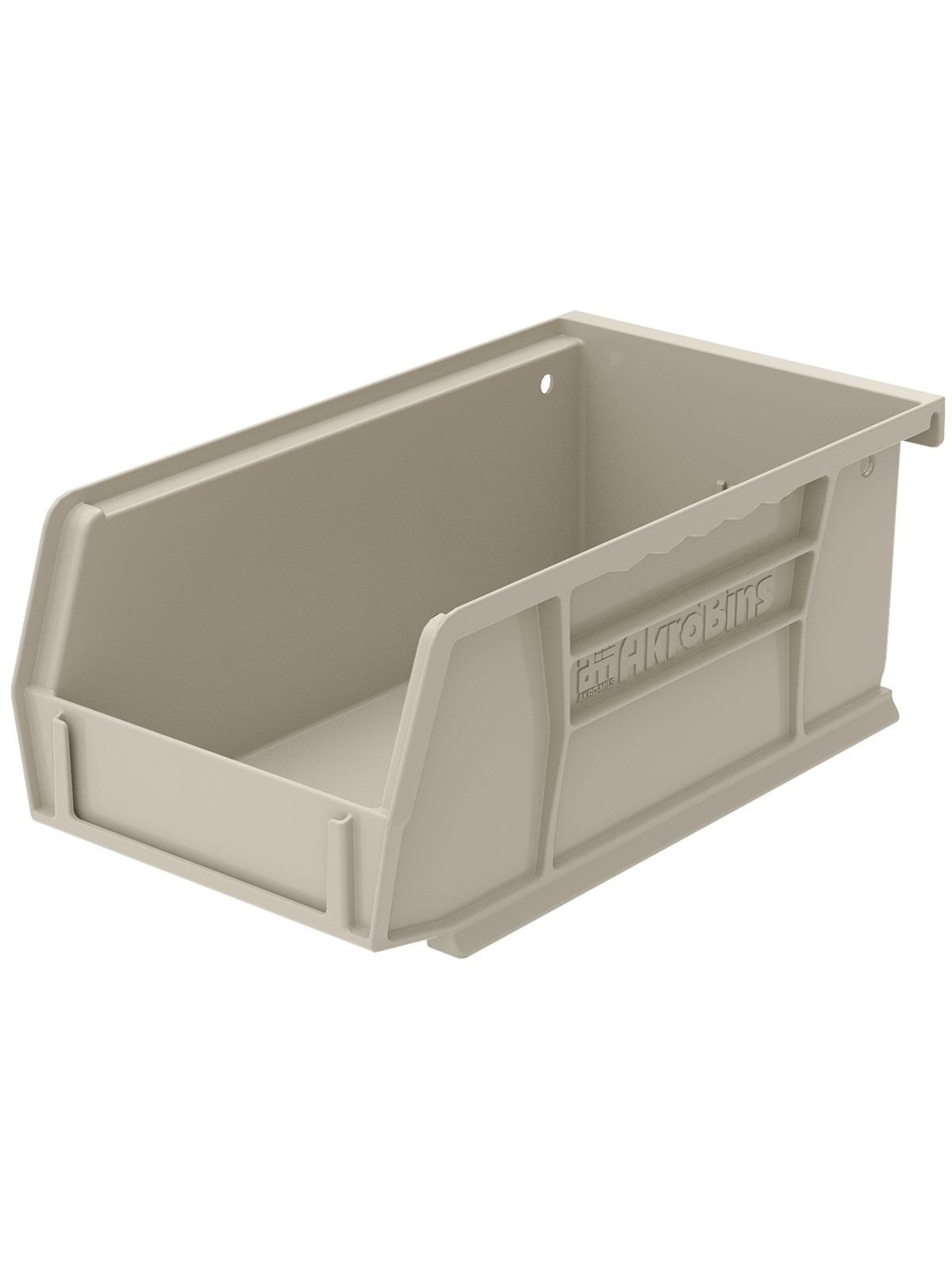 AkroBins are heavy-duty and securely stack on top of each other, sit on shelving, and hang from Akro-Mils racks, panels, rails and carts. Unaffected by weak acids and alkalis the sturdy one piece construction is water, rust and corrosion-proof. Finger grip allows for easy handling. Large label slot for easy identification of contents. Autoclavable up to 250° F. Guaranteed not to crack or break under normal load conditions as stated in the 1-year limited warranty. Optional dividers and labels available, see Related Items tab. AkroBins available in Red, Yellow, Blue, Green, Black, Stone, and Semi-Clear. FOB Shipping Point.