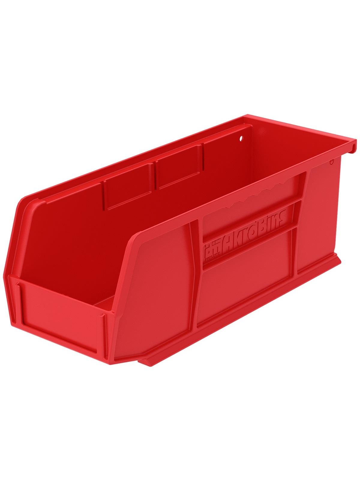 AkroBins are heavy-duty and securely stack on top of each other, sit on shelving, and hang from Akro-Mils racks, panels, rails and carts. Unaffected by weak acids and alkalis the sturdy one piece construction is water, rust and corrosion-proof. Finger grip allows for easy handling. Large label slot for easy identification of contents. Autoclavable up to 250° F. Guaranteed not to crack or break under normal load conditions as stated in the 1-year limited warranty. Optional dividers and labels available, see Related Items tab. AkroBins available in Red, Yellow, Blue, Green, Black, Stone, and Semi-Clear. FOB Shipping Point.