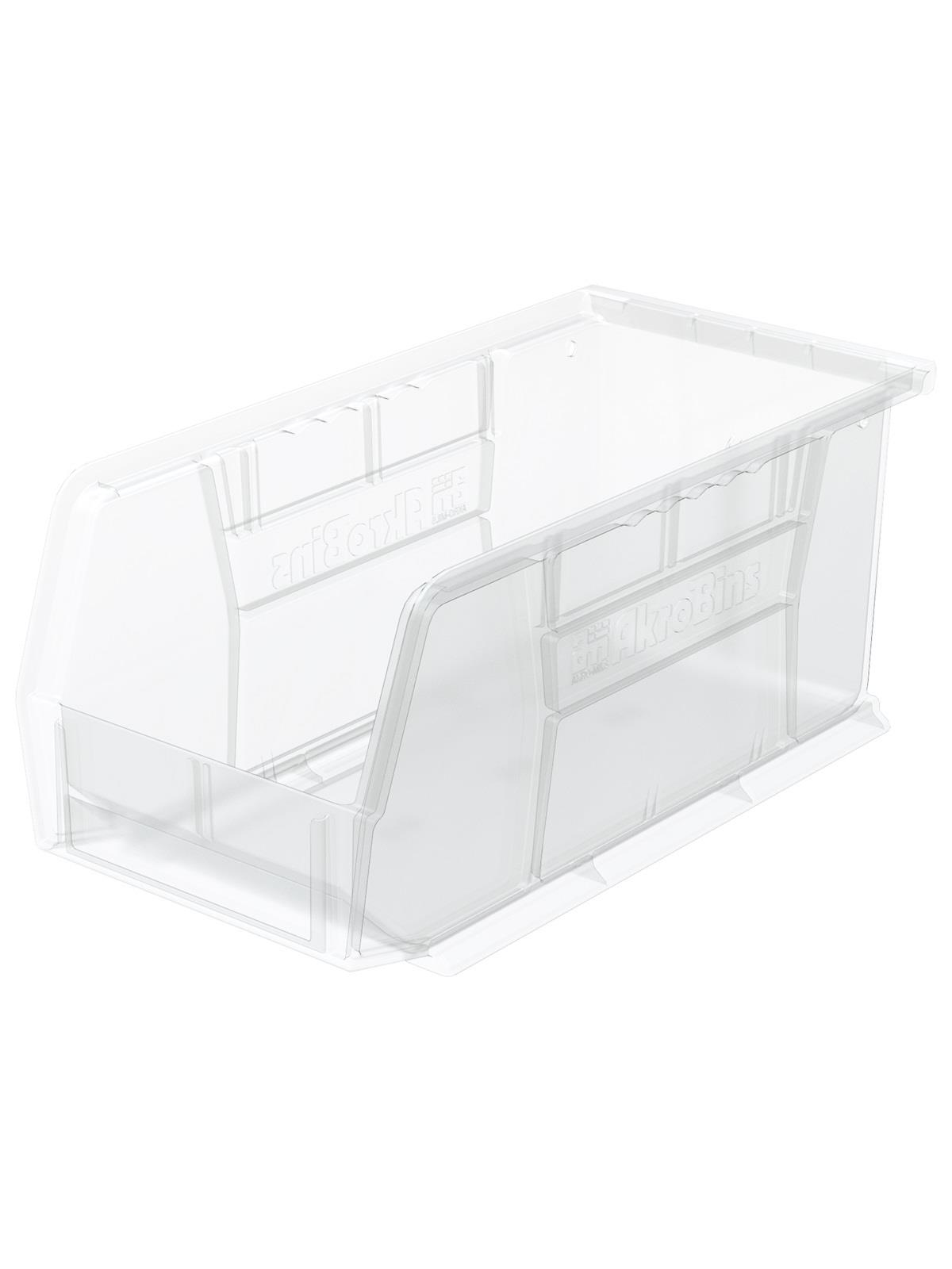 AkroBins are heavy-duty and securely stack on top of each other, sit on shelving, and hang from Akro-Mils racks, panels, rails and carts. Unaffected by weak acids and alkalis the sturdy one piece construction is water, rust and corrosion-proof. Finger grip allows for easy handling. Large label slot for easy identification of contents. Autoclavable up to 250° F. Guaranteed not to crack or break under normal load conditions as stated in the 1-year limited warranty. Optional dividers and labels available, see Related Items tab. AkroBins available in Red, Yellow, Blue, Green, Black, Stone, and Semi-Clear. FOB Shipping Point.