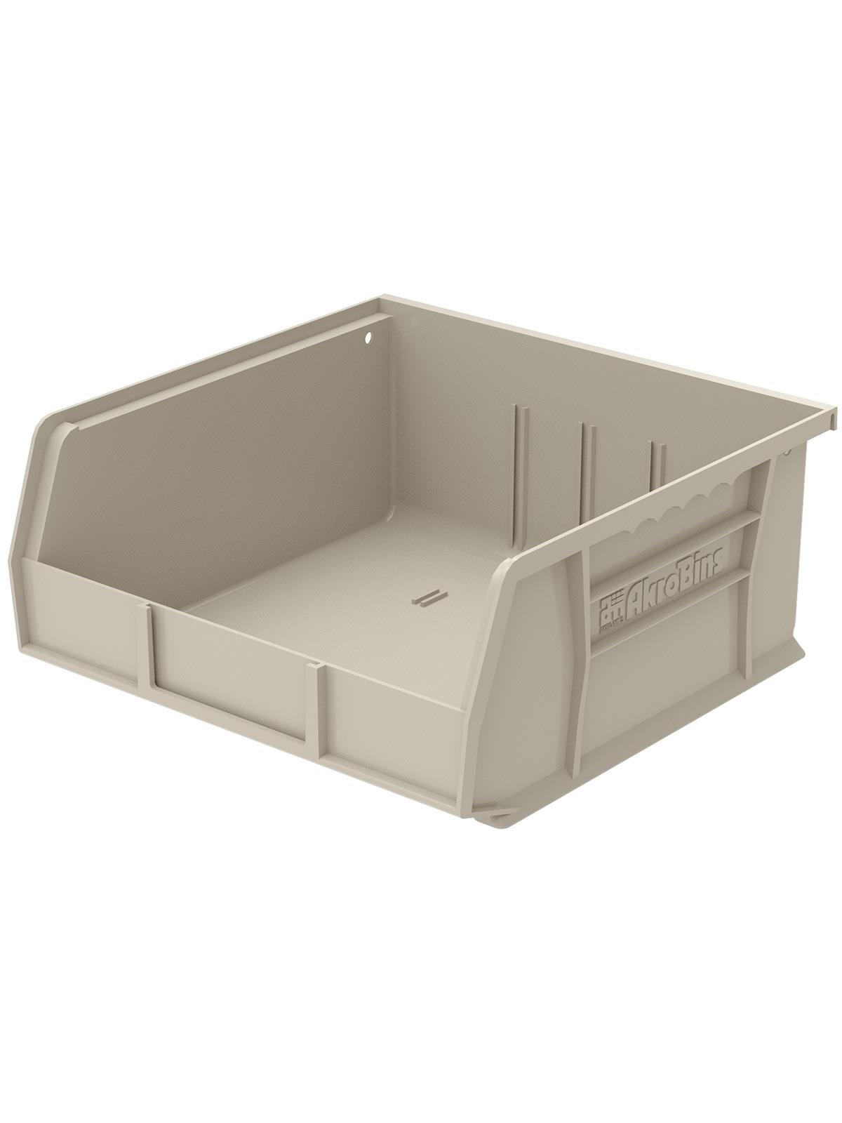 AkroBins are heavy-duty and securely stack on top of each other, sit on shelving, and hang from Akro-Mils racks, panels, rails and carts. Unaffected by weak acids and alkalis the sturdy one piece construction is water, rust and corrosion-proof. Finger grip allows for easy handling. Large label slot for easy identification of contents. Autoclavable up to 250° F. Guaranteed not to crack or break under normal load conditions as stated in the 1-year limited warranty. Optional dividers and labels available, see Related Items tab. AkroBins available in Red, Yellow, Blue, Green, Black, Stone, and Semi-Clear. FOB Shipping Point.