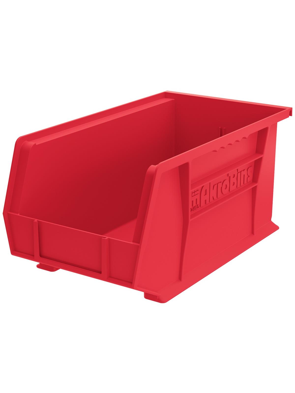 AkroBins are heavy-duty and securely stack on top of each other, sit on shelving, and hang from Akro-Mils racks, panels, rails and carts. Unaffected by weak acids and alkalis the sturdy one piece construction is water, rust and corrosion-proof. Finger grip allows for easy handling. Large label slot for easy identification of contents. Autoclavable up to 250° F. Guaranteed not to crack or break under normal load conditions as stated in the 1-year limited warranty. Optional dividers and labels available, see Related Items tab. AkroBins available in Red, Yellow, Blue, Green, Black, Stone, and Semi-Clear. FOB Shipping Point.