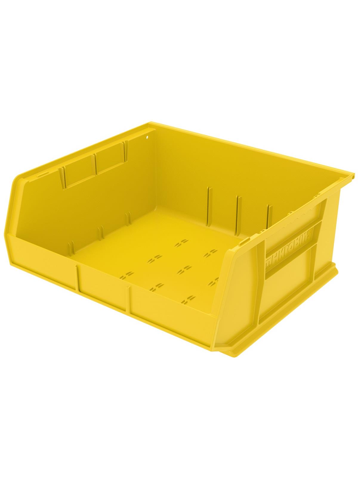 AkroBins are heavy-duty and securely stack on top of each other, sit on shelving, and hang from Akro-Mils racks, panels, rails and carts. Unaffected by weak acids and alkalis the sturdy one piece construction is water, rust and corrosion-proof. Finger grip allows for easy handling. Large label slot for easy identification of contents. Autoclavable up to 250° F. Guaranteed not to crack or break under normal load conditions as stated in the 1-year limited warranty. Optional dividers and labels available, see Related Items tab. AkroBins available in Red, Yellow, Blue, Green, Black, Stone, and Semi-Clear. FOB Shipping Point.