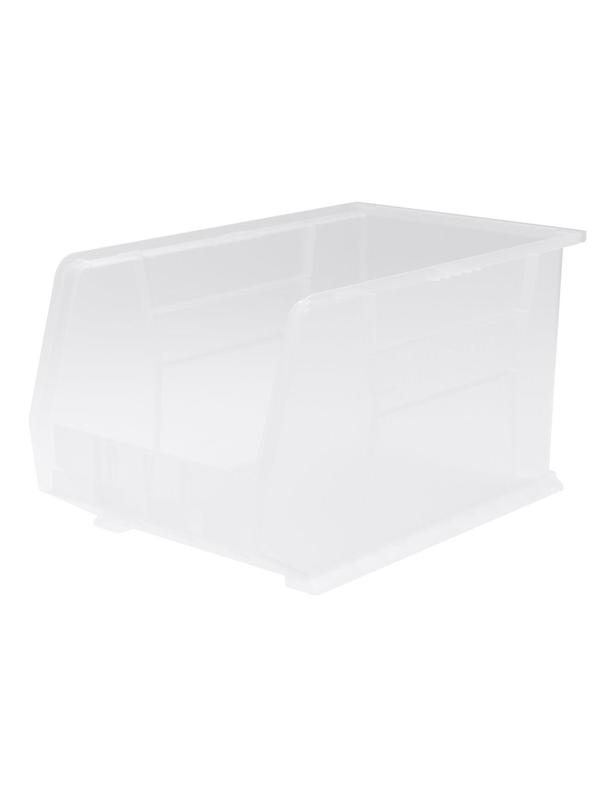 AkroBins are heavy-duty and securely stack on top of each other, sit on shelving, and hang from Akro-Mils racks, panels, rails and carts. Unaffected by weak acids and alkalis the sturdy one piece construction is water, rust and corrosion-proof. Finger grip allows for easy handling. Large label slot for easy identification of contents. Autoclavable up to 250° F. Guaranteed not to crack or break under normal load conditions as stated in the 1-year limited warranty. Optional dividers and labels available, see Related Items tab. AkroBins available in Red, Yellow, Blue, Green, Black, Stone, and Semi-Clear. FOB Shipping Point.