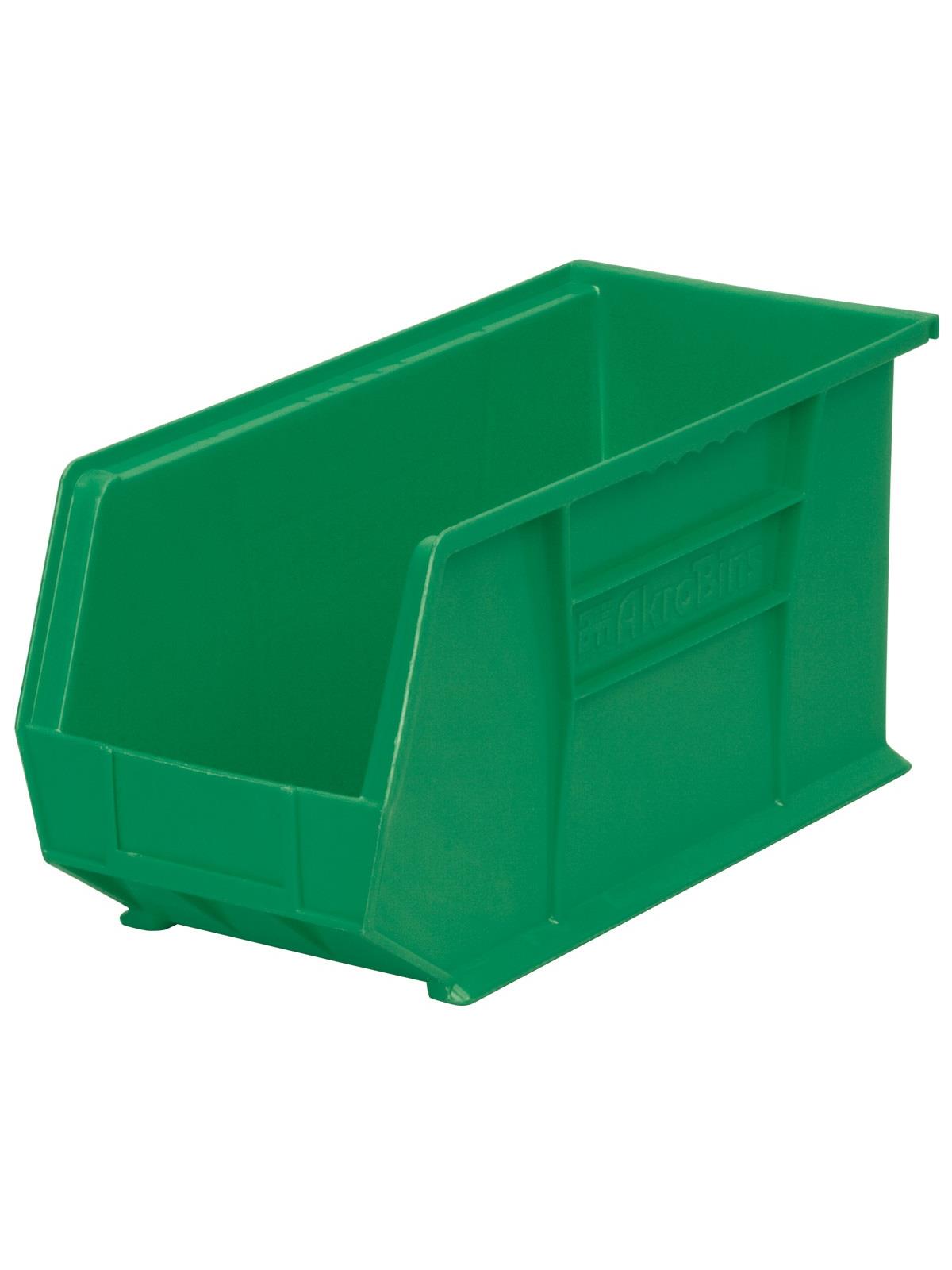 AkroBins are heavy-duty and securely stack on top of each other, sit on shelving, and hang from Akro-Mils racks, panels, rails and carts. Unaffected by weak acids and alkalis the sturdy one piece construction is water, rust and corrosion-proof. Finger grip allows for easy handling. Large label slot for easy identification of contents. Autoclavable up to 250° F. Guaranteed not to crack or break under normal load conditions as stated in the 1-year limited warranty. Optional dividers and labels available, see Related Items tab. AkroBins available in Red, Yellow, Blue, Green, Black, Stone, and Semi-Clear. FOB Shipping Point.
