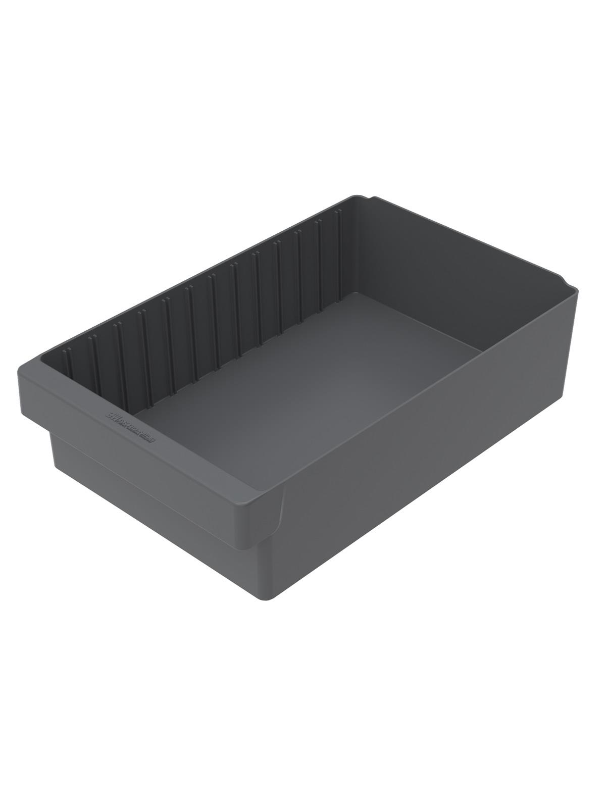 Offered in 12" or 18" depths to work with compatible shelving. Easy to label and color code inventory for quick identification of parts and supplies. Drawers can be stacked to optimize space. Wide front handle for easy gripping when AkroDrawers are loaded or contain heavy contents. Can be used with available shelving, racks, mobile carts or can be used by themselves. Sturdy back stop tab ensures AkroDrawers can hang securely from shelves. Dividers are available to keep contents neatly separated in drawers. Available in Blue, Gray, Yellow, Red and Clear - Minimum order required. FOB Shipping Point.