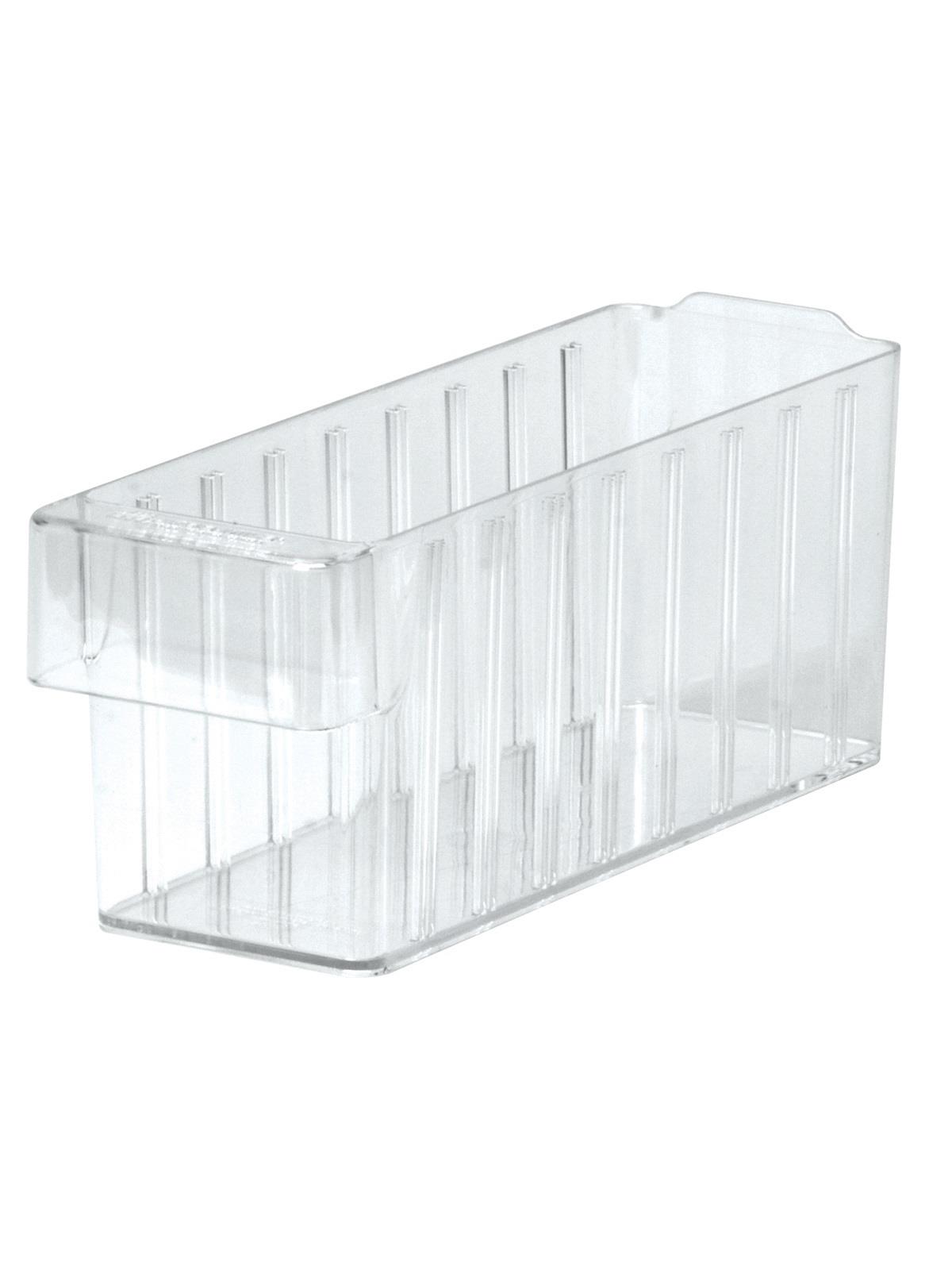 Offered in 12" or 18" depths to work with compatible shelving. Easy to label and color code inventory for quick identification of parts and supplies. Drawers can be stacked to optimize space. Wide front handle for easy gripping when AkroDrawers are loaded or contain heavy contents. Can be used with available shelving, racks, mobile carts or can be used by themselves. Sturdy back stop tab ensures AkroDrawers can hang securely from shelves. Dividers are available to keep contents neatly separated in drawers. Available in Blue, Gray, Yellow, Red and Clear - Minimum order required. FOB Shipping Point.