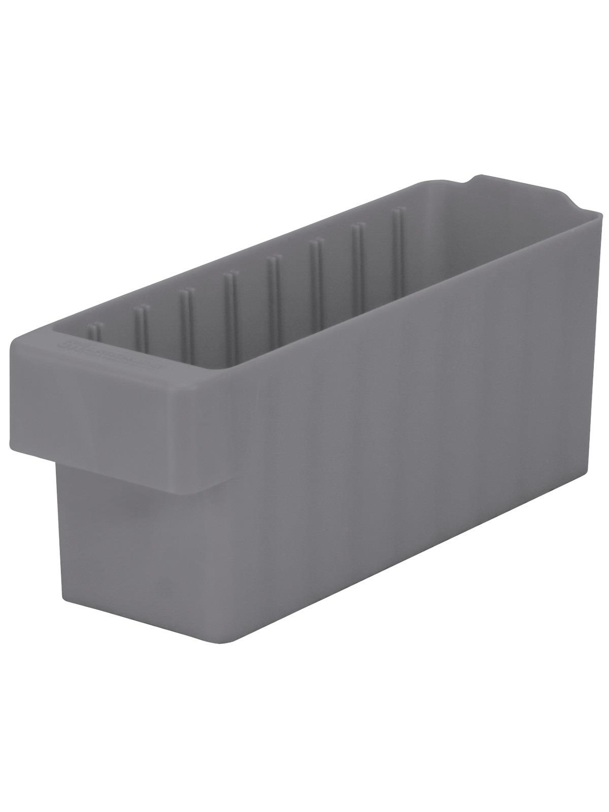 Offered in 12" or 18" depths to work with compatible shelving. Easy to label and color code inventory for quick identification of parts and supplies. Drawers can be stacked to optimize space. Wide front handle for easy gripping when AkroDrawers are loaded or contain heavy contents. Can be used with available shelving, racks, mobile carts or can be used by themselves. Sturdy back stop tab ensures AkroDrawers can hang securely from shelves. Dividers are available to keep contents neatly separated in drawers. Available in Blue, Gray, Yellow, Red and Clear - Minimum order required. FOB Shipping Point.