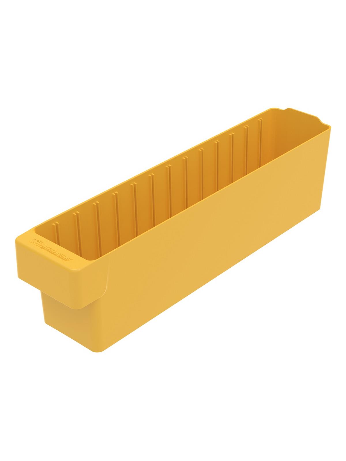 Offered in 12" or 18" depths to work with compatible shelving. Easy to label and color code inventory for quick identification of parts and supplies. Drawers can be stacked to optimize space. Wide front handle for easy gripping when AkroDrawers are loaded or contain heavy contents. Can be used with available shelving, racks, mobile carts or can be used by themselves. Sturdy back stop tab ensures AkroDrawers can hang securely from shelves. Dividers are available to keep contents neatly separated in drawers. Available in Blue, Gray, Yellow, Red and Clear - Minimum order required. FOB Shipping Point.