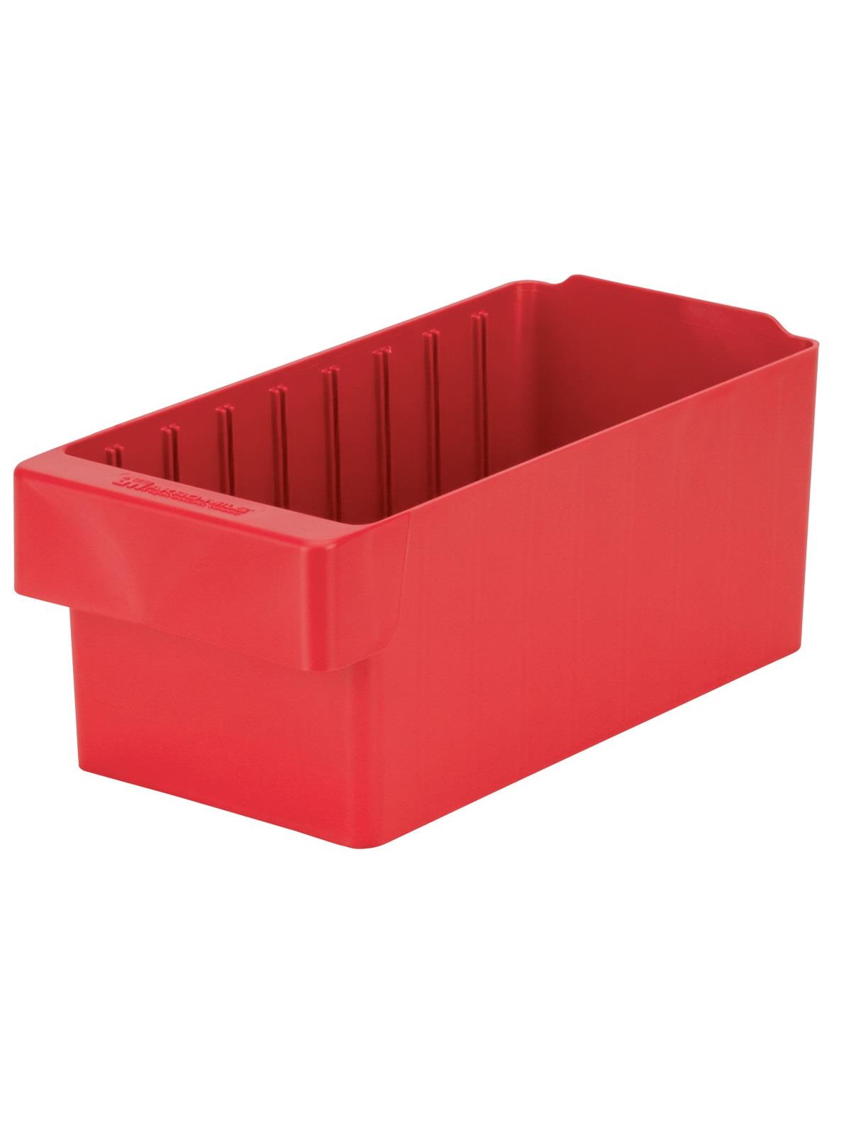 Offered in 12" or 18" depths to work with compatible shelving. Easy to label and color code inventory for quick identification of parts and supplies. Drawers can be stacked to optimize space. Wide front handle for easy gripping when AkroDrawers are loaded or contain heavy contents. Can be used with available shelving, racks, mobile carts or can be used by themselves. Sturdy back stop tab ensures AkroDrawers can hang securely from shelves. Dividers are available to keep contents neatly separated in drawers. Available in Blue, Gray, Yellow, Red and Clear - Minimum order required. FOB Shipping Point.