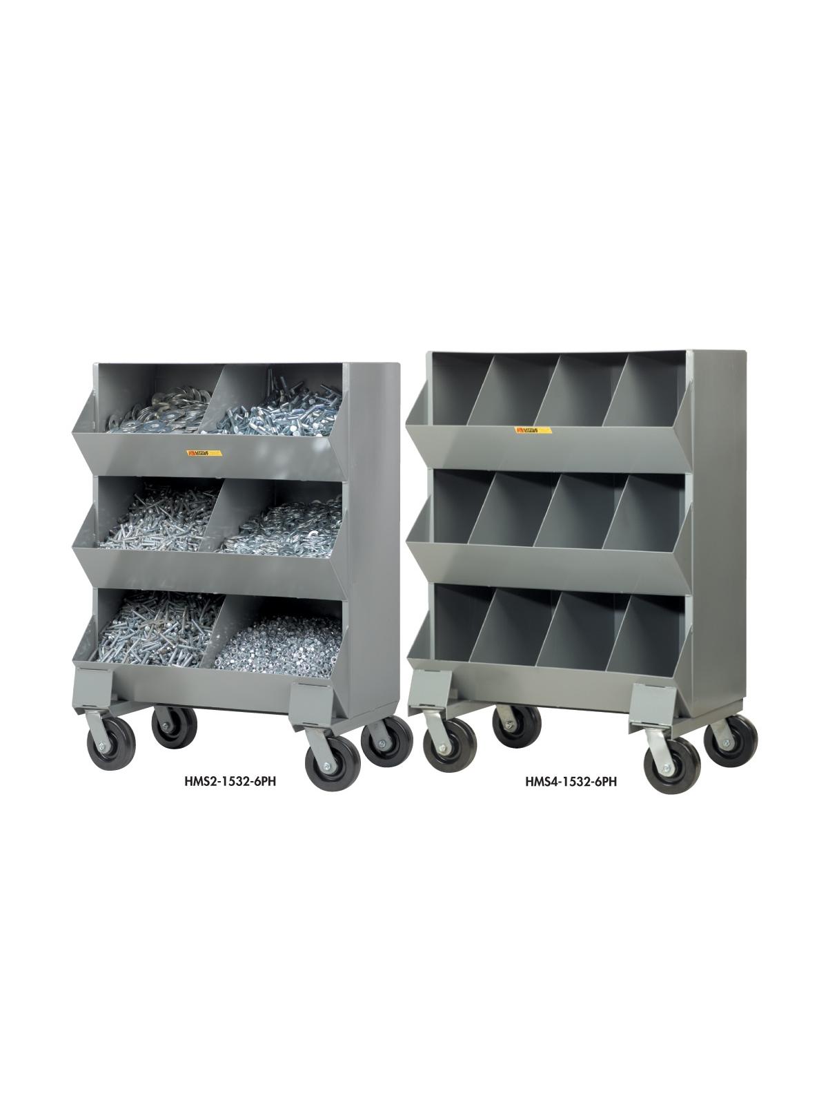 Four swivel casters with hard tread phenolic wheels for ease of movement. Mobile units allow you to bring the parts to the workspace and be repositioned with changing requirements. Overall size is 32" W. x 20" D. x 45-1/2" H. 800 lbs. capacity per tier. 2,400 lbs. overall capacity. FOB Shipping Point.