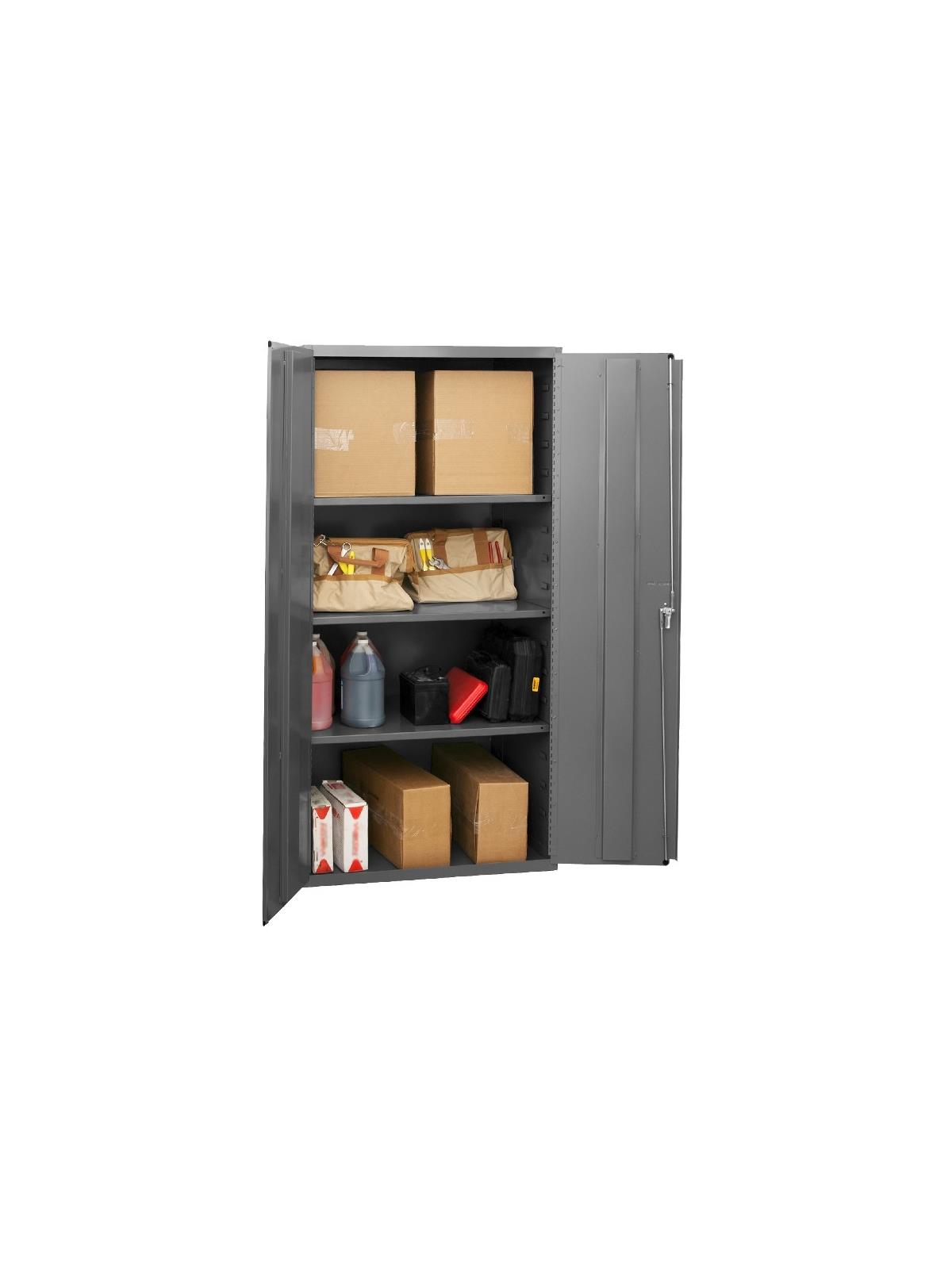 Choose from ten models to store, sort and organize. Construction features not found anywhere else. Ideal for factories, warehouses or offices. Securely store tools, parts and supplies. Doors swing effortlessly. Doors also feature three point locking handle and two keys. Durable gray powder coat finish. FOB Shipping Point.