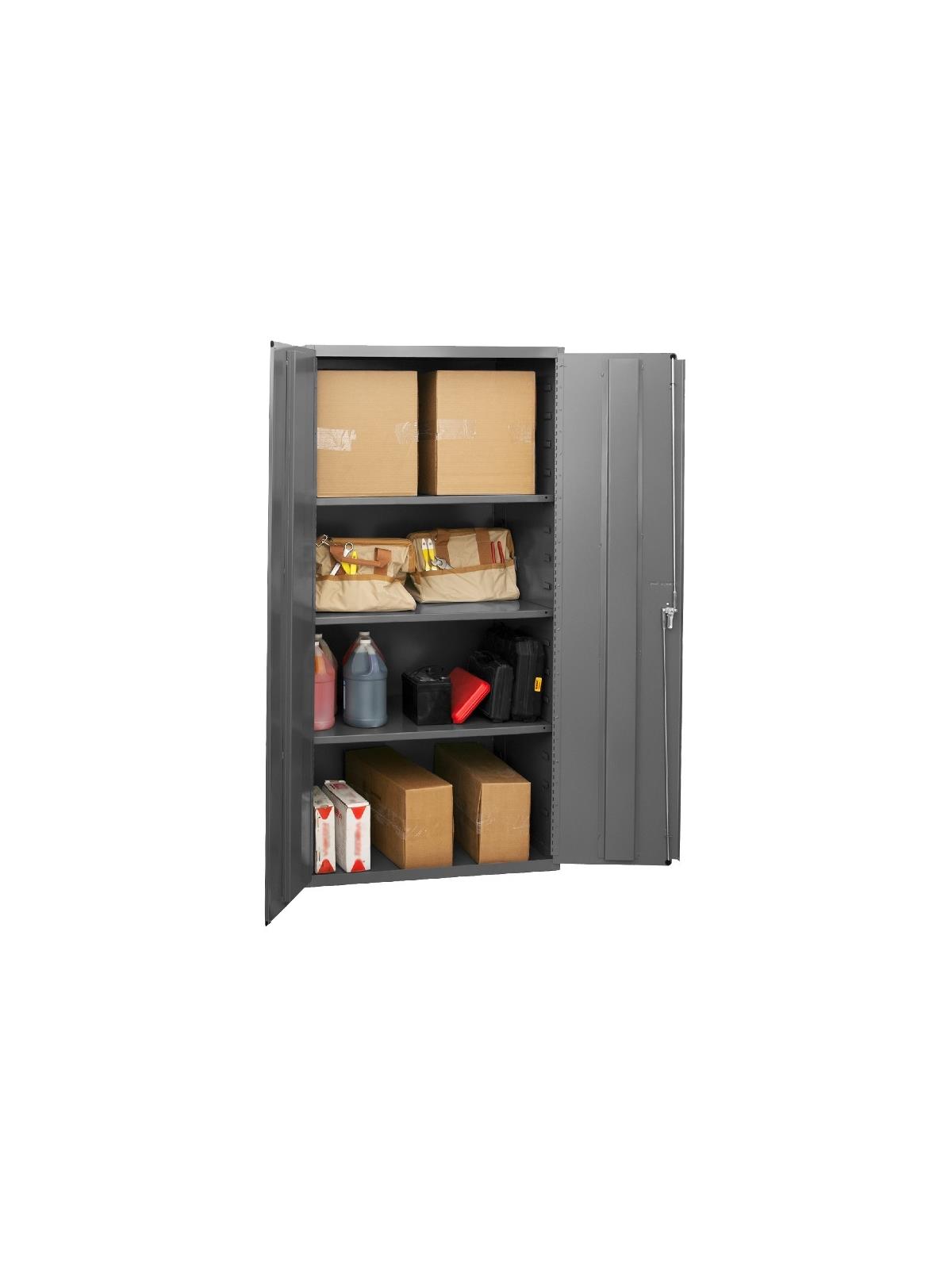 Choose from ten models to store, sort and organize. Construction features not found anywhere else. Ideal for factories, warehouses or offices. Securely store tools, parts and supplies. Doors swing effortlessly. Doors also feature three point locking handle and two keys. Durable gray powder coat finish. FOB Shipping Point.