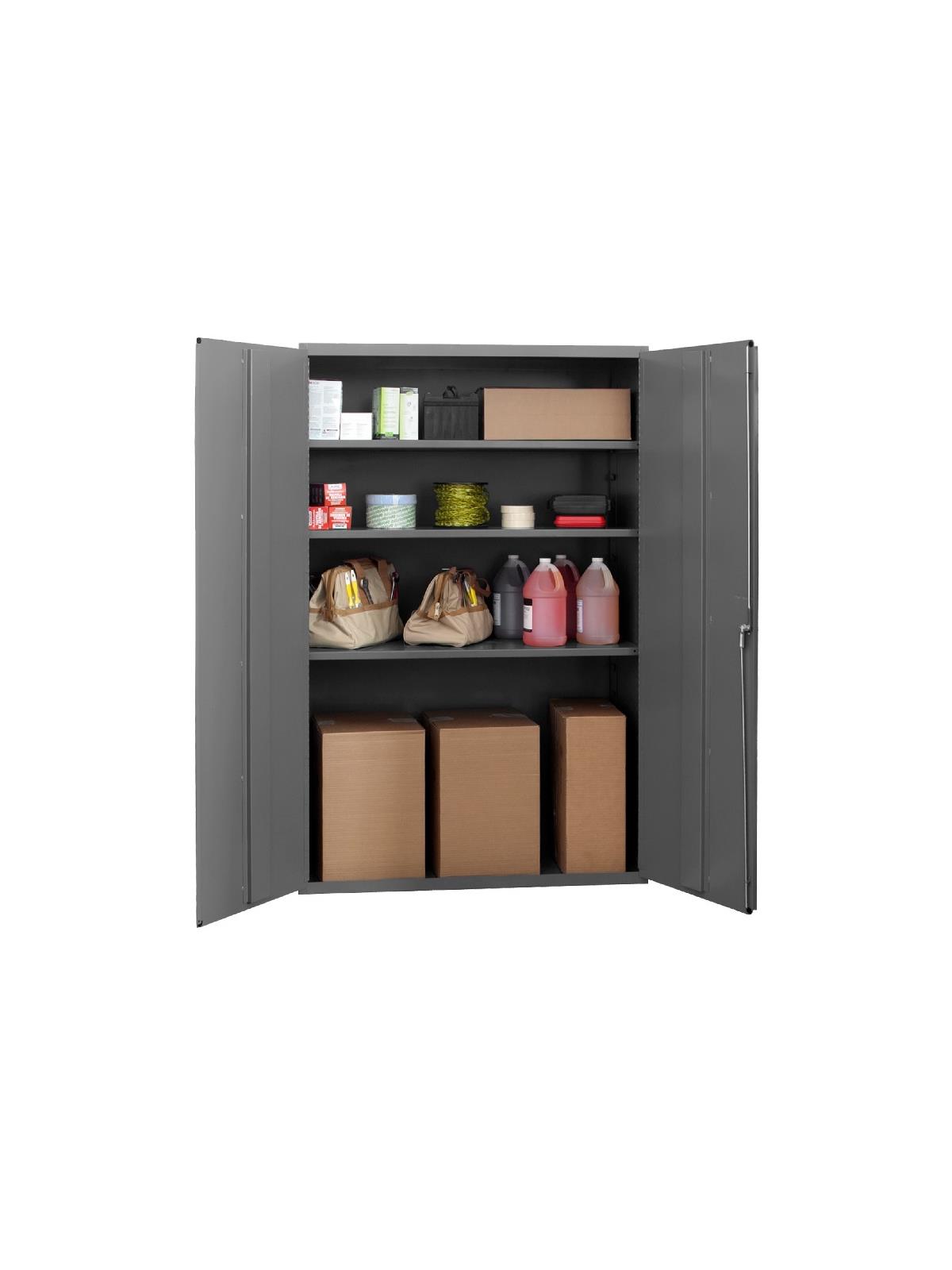 Choose from ten models to store, sort and organize. Construction features not found anywhere else. Ideal for factories, warehouses or offices. Securely store tools, parts and supplies. Doors swing effortlessly. Doors also feature three point locking handle and two keys. Durable gray powder coat finish. FOB Shipping Point.
