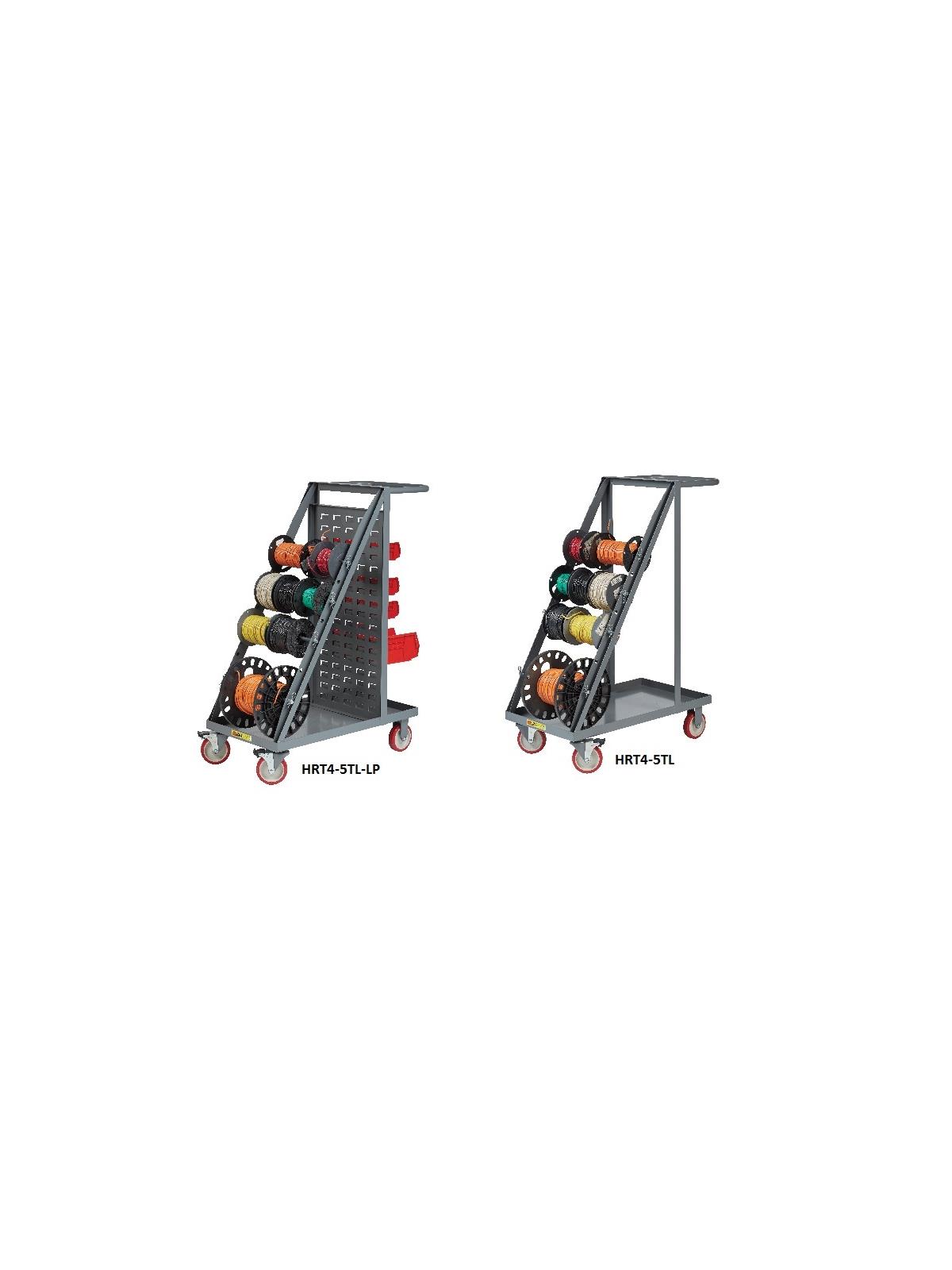 Mobile Wire Reel Cart is ideal for transporting your spools of wire and other materials from job to job. Four 16" wide rods with 7 available positions hold multiple wire reel configurations. Solid bottom shelf allows additional storage. Rolls smoothly on 5" non-marking polyurethane wheels. 2 rigid and 2 swivel casters with total lock brakes secure the unit in place and keep it from “walking” while in use. Available with an open back or 16 gauge louvered panel back. (Wire not included.) FOB Shipping Point.