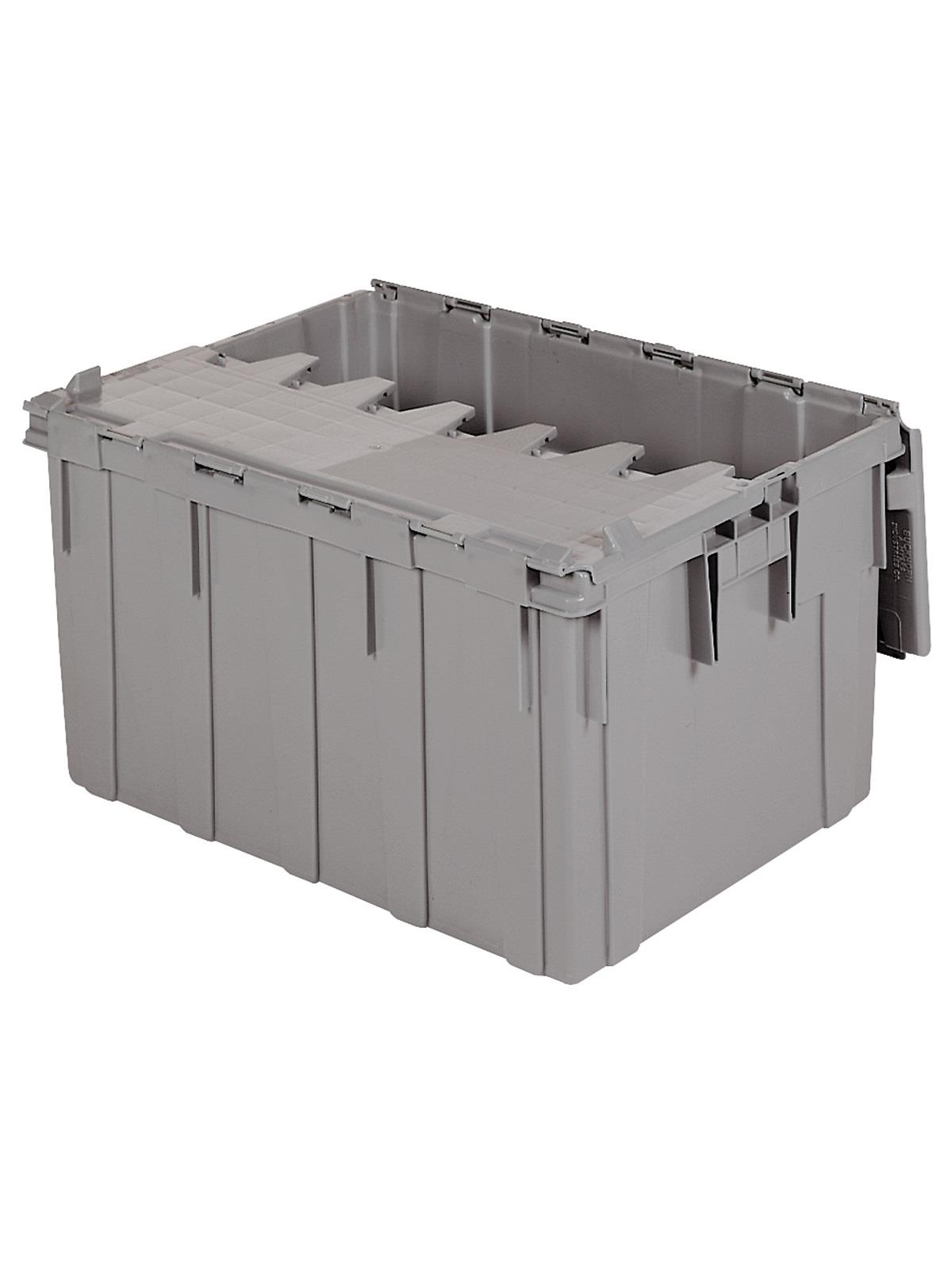 • These industrial strength Attached Lid Containers form a reusable, versatile, economical system for order picking, distribution, shipping or storage.