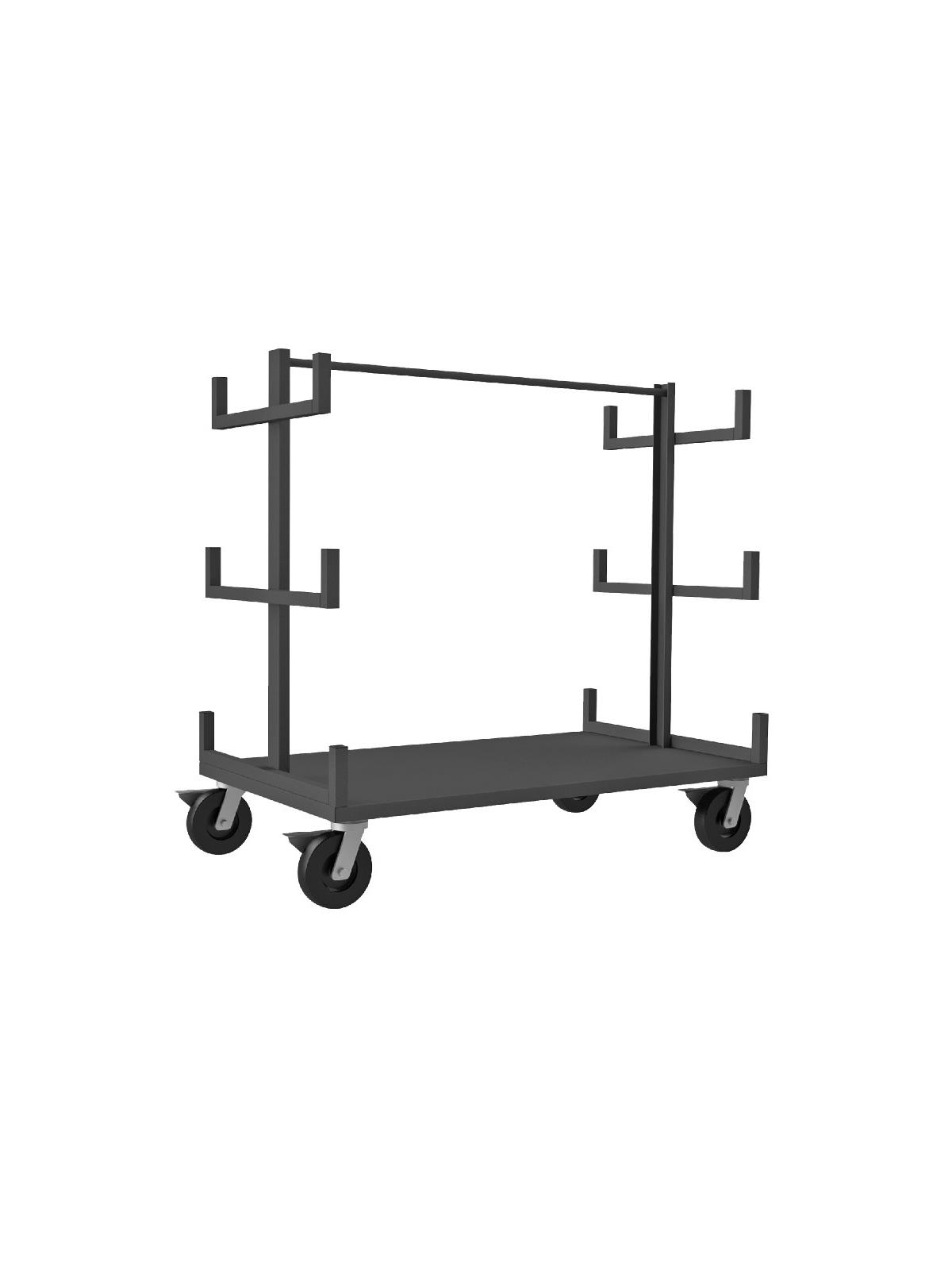 Store or transport bars, pipes, conduit and more easily. Ships fully assembled and ready for use. Deck height measures 11-1/8" above the floor. Rolls on 8 x 2" phenolic casters. Gray, textured, powder coat finish. FOB Shipping Point.