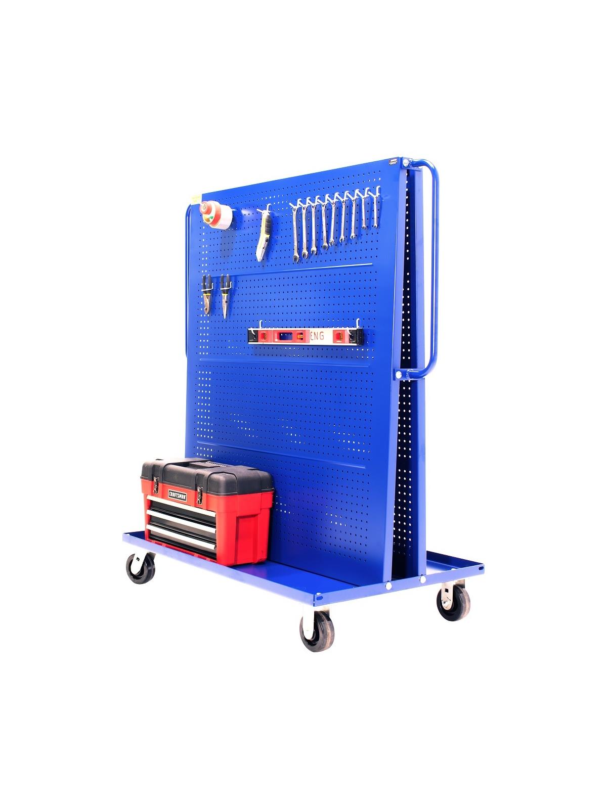 • Customizable dual-sided mobile workstation for organizing tools and supplies.