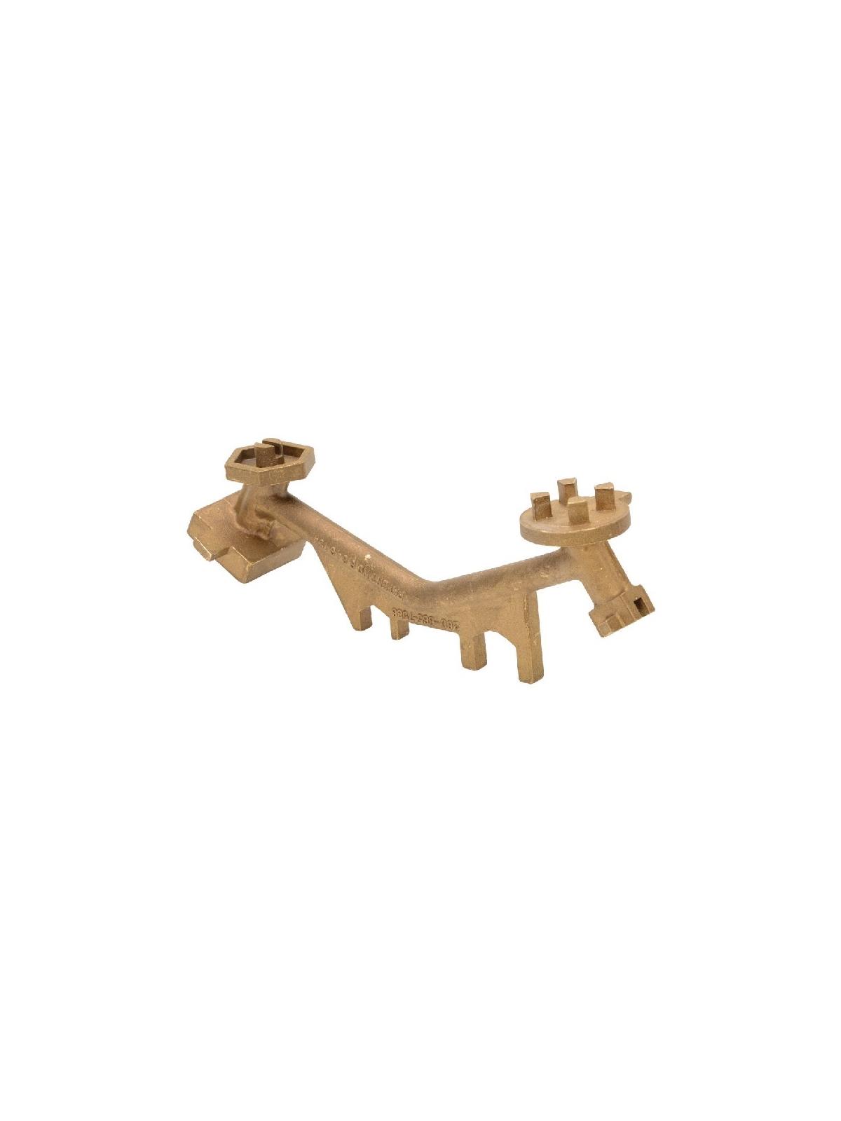 Available in cast steel with polished zinc finish and spark resistant bronze alloy to meet many applications. Multipurpose: also works as a bung nut wrench, ring wrench and faucet wrench -- eliminates the need for extra tools. FOB Shipping Point.