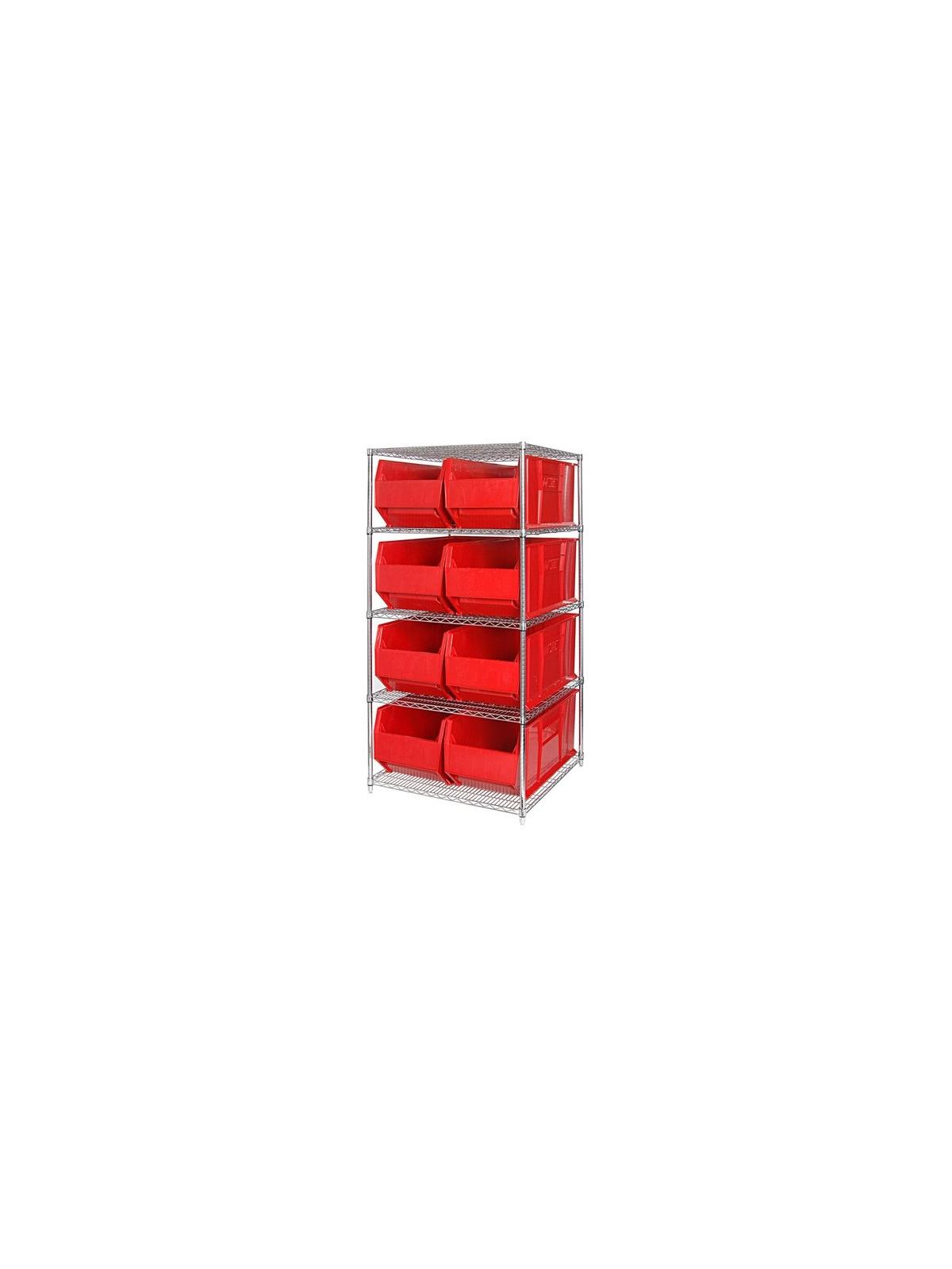 Combine stylish chrome shelving and parts organizing bins. Sturdy shelving unit supports loads up to 800 lbs. Choice of bins. Easy to assemble. Hulk Containers are available in Blue, Red and Yellow. FOB Shipping Point.