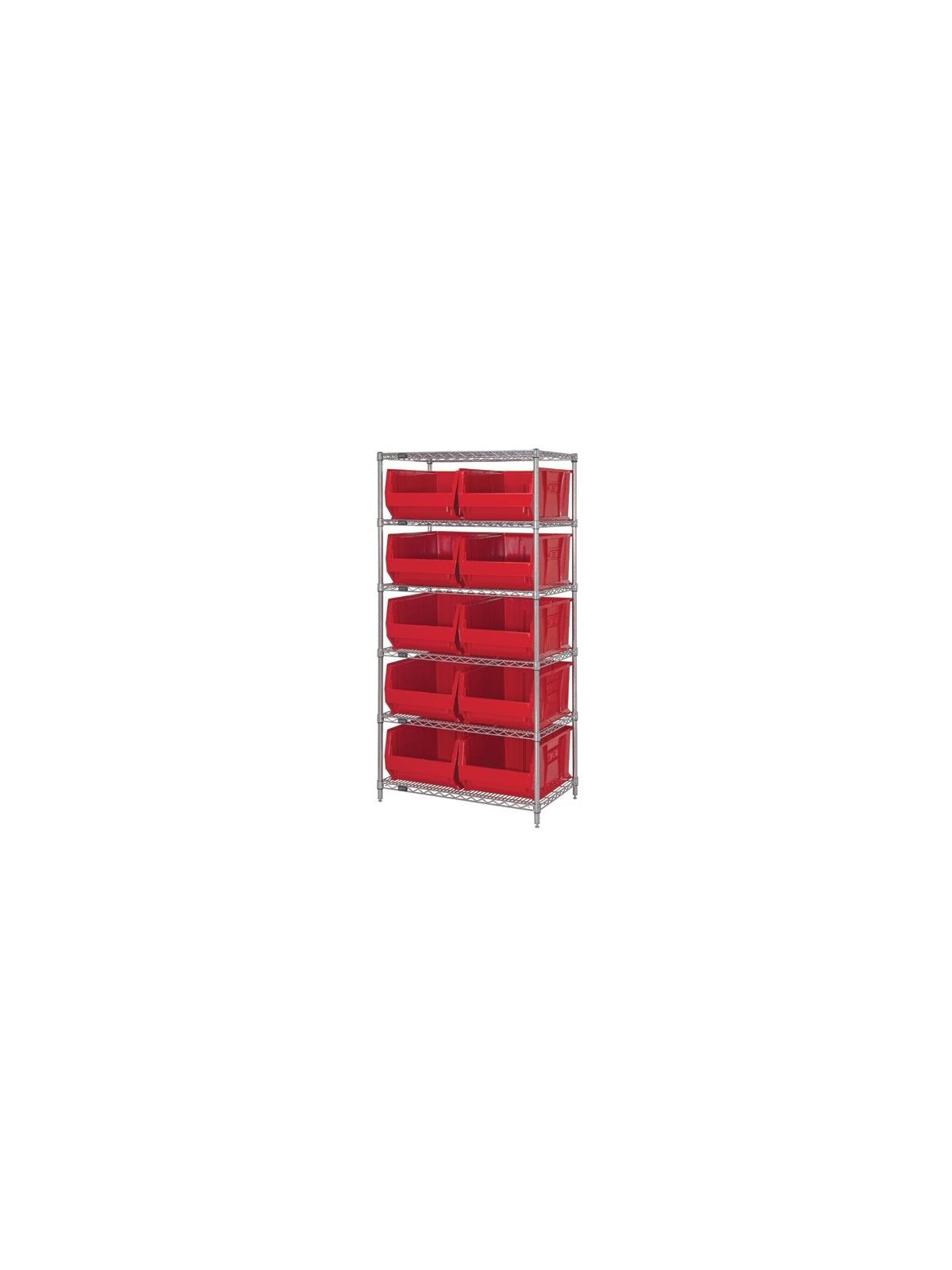 Combine stylish chrome shelving and parts organizing bins. Sturdy shelving unit supports loads up to 800 lbs. Choice of bins. Easy to assemble. Hulk Containers are available in Blue, Red and Yellow. FOB Shipping Point.