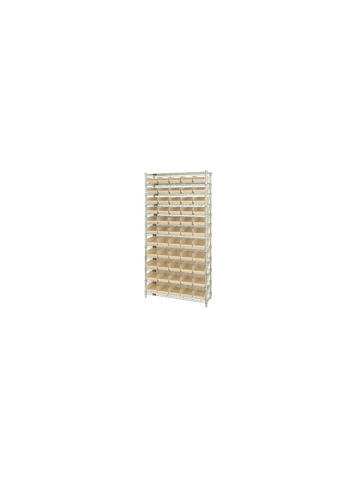 Combine stylish chrome shelving and parts organizing bins. Sturdy shelving unit supports loads up to 800 lbs. Choice of bins. Easy to assemble. Shelf Bins are available in Blue, Red, Yellow, Green, Ivory or Black.  FOB Shipping Point.