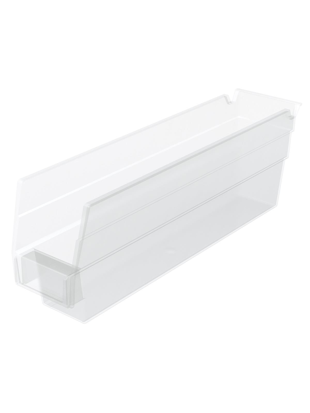 4" Shelf Bins are the industry standard for quality, durability and value. Molded from durable polypropylene for easy identification of parts and supplies. Built-in rear hanglock allows bin to tilt out for complete access. Optional dividers available. FOB Shipping Point.