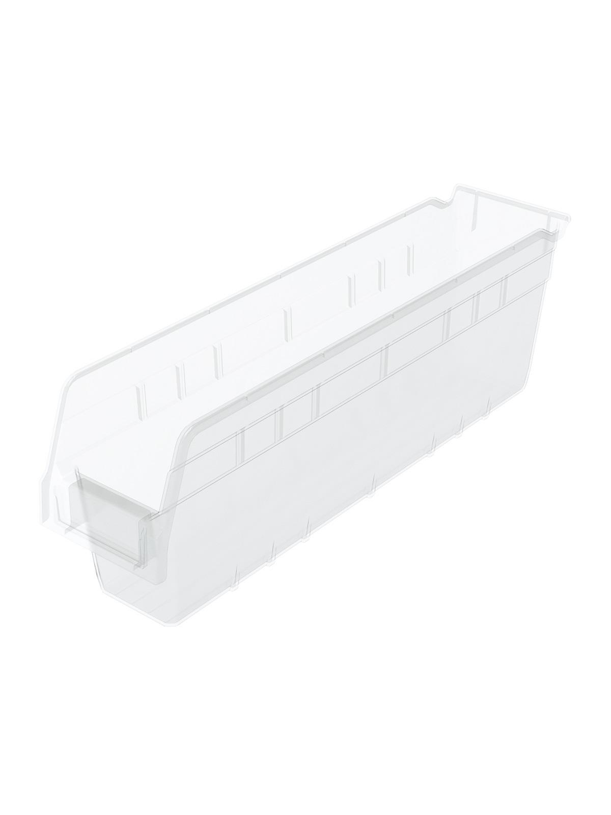 Clear 6" ShelfMax® Bins expand storage capacity up to 85% over standard 4" bins. Rolled top edge for added strength when filled to capacity. Durable clear polypropylene construction. Optional lids and dividers available. FOB Shipping Point.