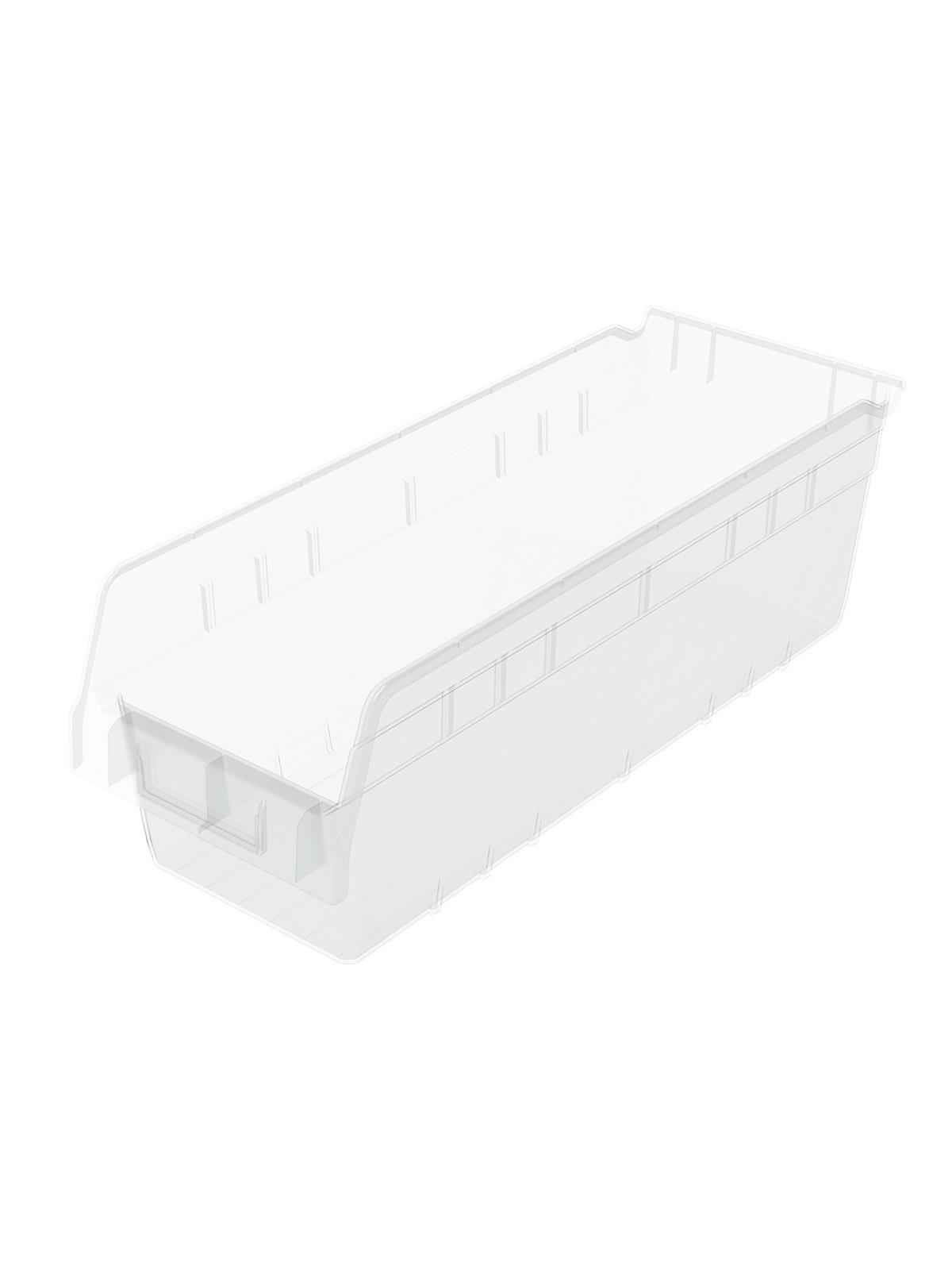 Clear 6" ShelfMax® Bins expand storage capacity up to 85% over standard 4" bins. Rolled top edge for added strength when filled to capacity. Durable clear polypropylene construction. Optional lids and dividers available. FOB Shipping Point.
