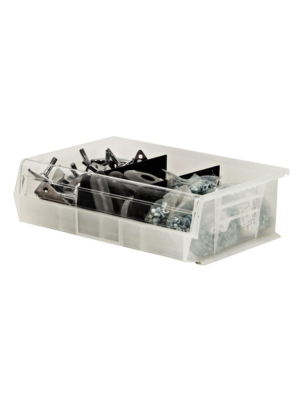 Tough, durable, high density shelf bins are the industry standard for quality. These tri-clear polypropylene bins feature a molded-in label holder, built-in rear hanglock which allows bins to tilt out for complete access when on shelving. A wide hopper front allows complete access to the contents of the bin. Edges are reinforced for added strength. They are designed for 12", 18" and 24" deep shelf units, racks or standard shelving. FOB Shipping Point.