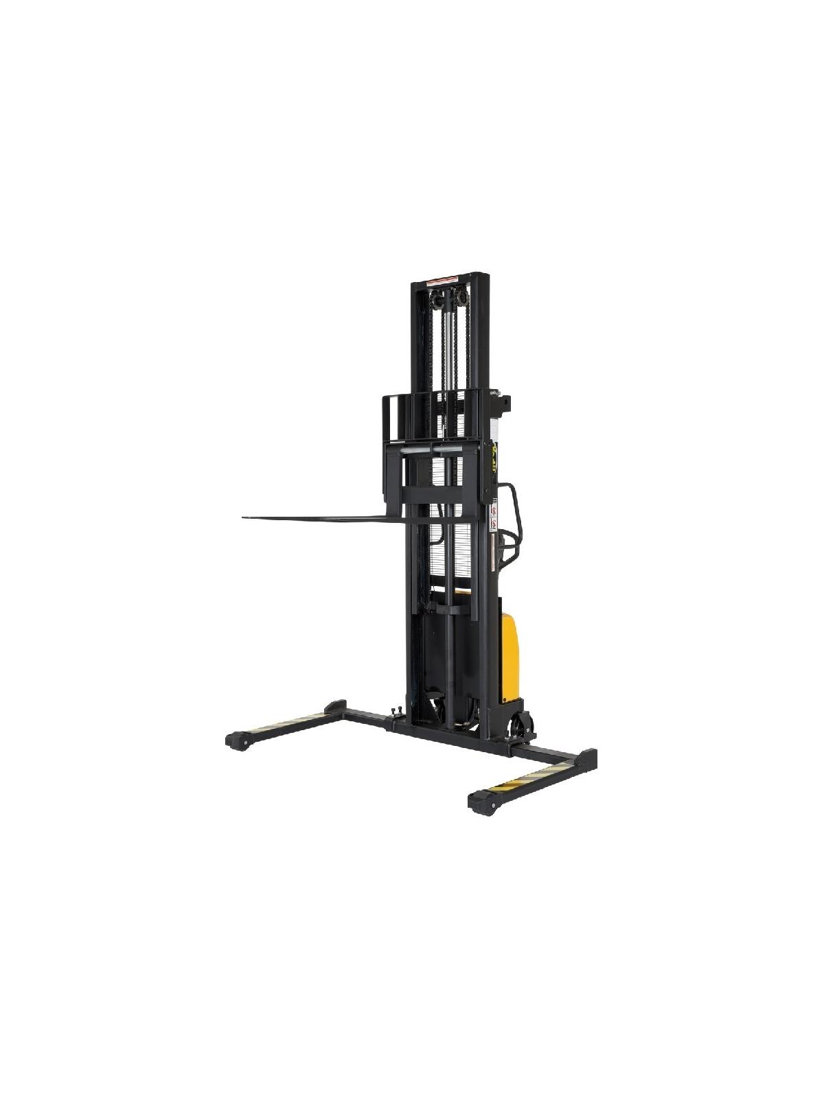 An economical alternative DC powered lift stacker. Ideal for maintenance and commercial applications. This unit can be used as a manual hand pump lift or a DC powered lift. DC unit is made up of 1500 watt motor, 2-12V, 40Ah batteries and 10 amp charger, level gauge and adjustable lowering speed. Forks are 6" wide. Features adjustable forks and support legs. Works with pallets and skids. FOB Shipping Point.