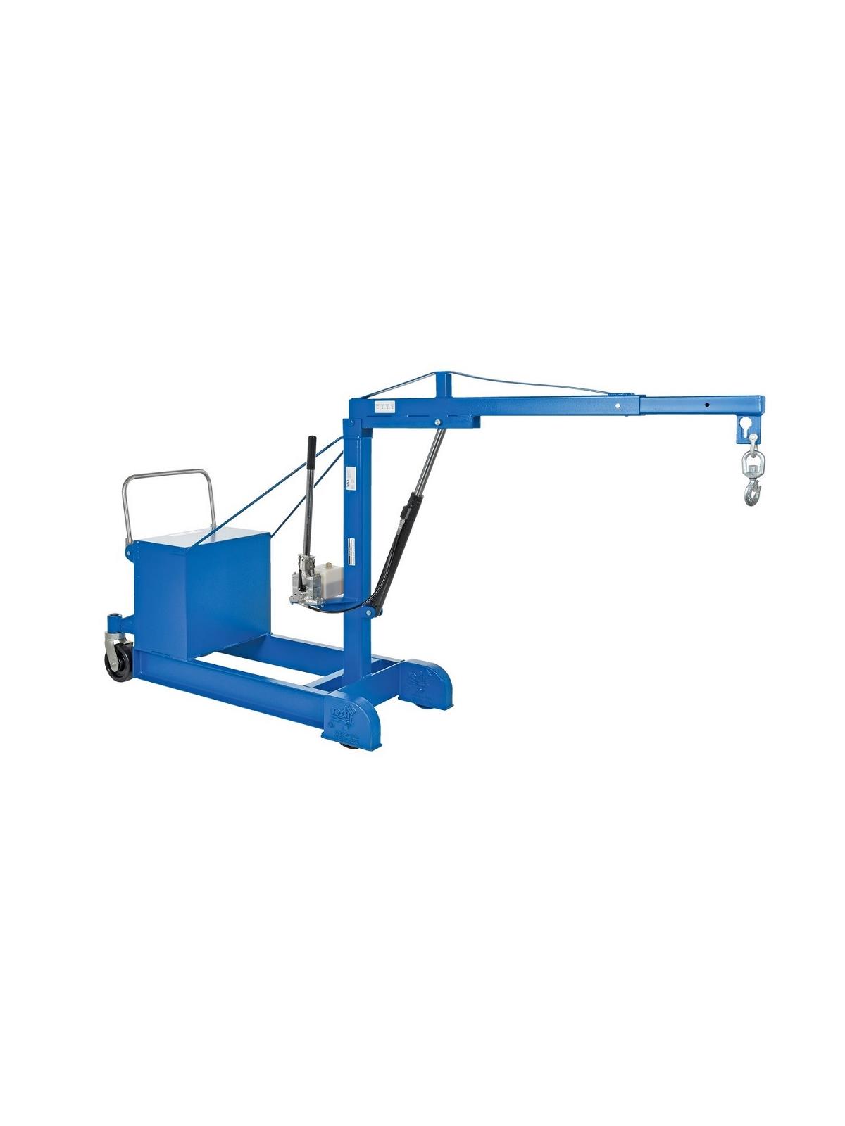 This crane has an adjustable boom to allow for maximum adjustments and versatility to lift a variety of loads. The boom is raised with a manual hydraulic hand pump or a push of a button on DC powered units. The boom also telescopes out for a greater reach. The counterbalance design eliminates the need for front legs, making the unit easier to maneuver and ideal for reaching tight, hard to reach areas. Units roll on two (2) rigid 8" x 2" glass-filled nylon and two (2) swivel 8" x 3" phenolic casters with side brake. FOB Shipping Point.