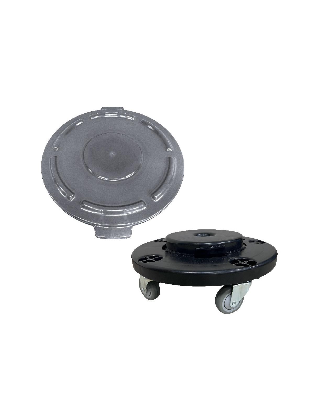 CRUSADER ROUND TRASH CANS - LIDS & DOLLY