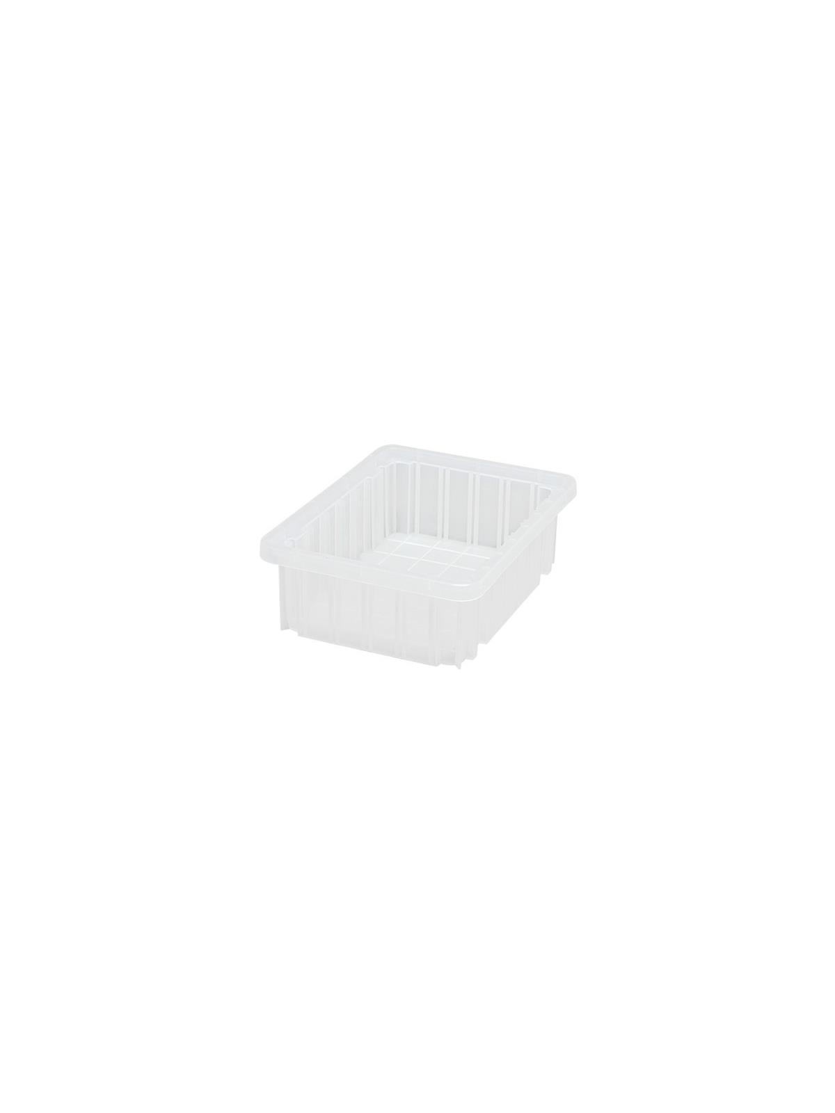 Can be used in industrial, commercial, electronic and health care industries for storage, assembly, fabrication and distribution applications. Compatible with most racks, shelving and automated, material handling equipment. Stacking rims and multi-ribbed external sides provide high impact strength. Large, smooth surface area on all four sides for content identification. Molded-in stacking ridge assures containers will stack securely with or without covers (covers sold separately). Available in Blue, Red, Gray or Clear. FOB Shipping Point.