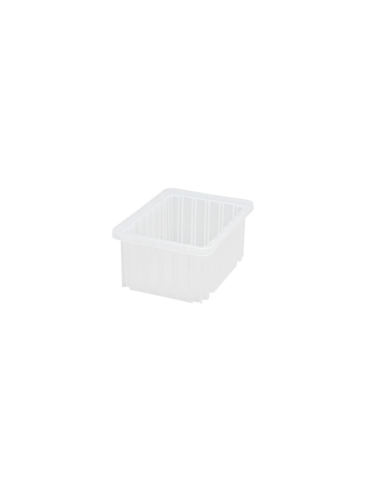 Can be used in industrial, commercial, electronic and health care industries for storage, assembly, fabrication and distribution applications. Compatible with most racks, shelving and automated, material handling equipment. Stacking rims and multi-ribbed external sides provide high impact strength. Large, smooth surface area on all four sides for content identification. Molded-in stacking ridge assures containers will stack securely with or without covers (covers sold separately). Available in Blue, Red, Gray or Clear. FOB Shipping Point.